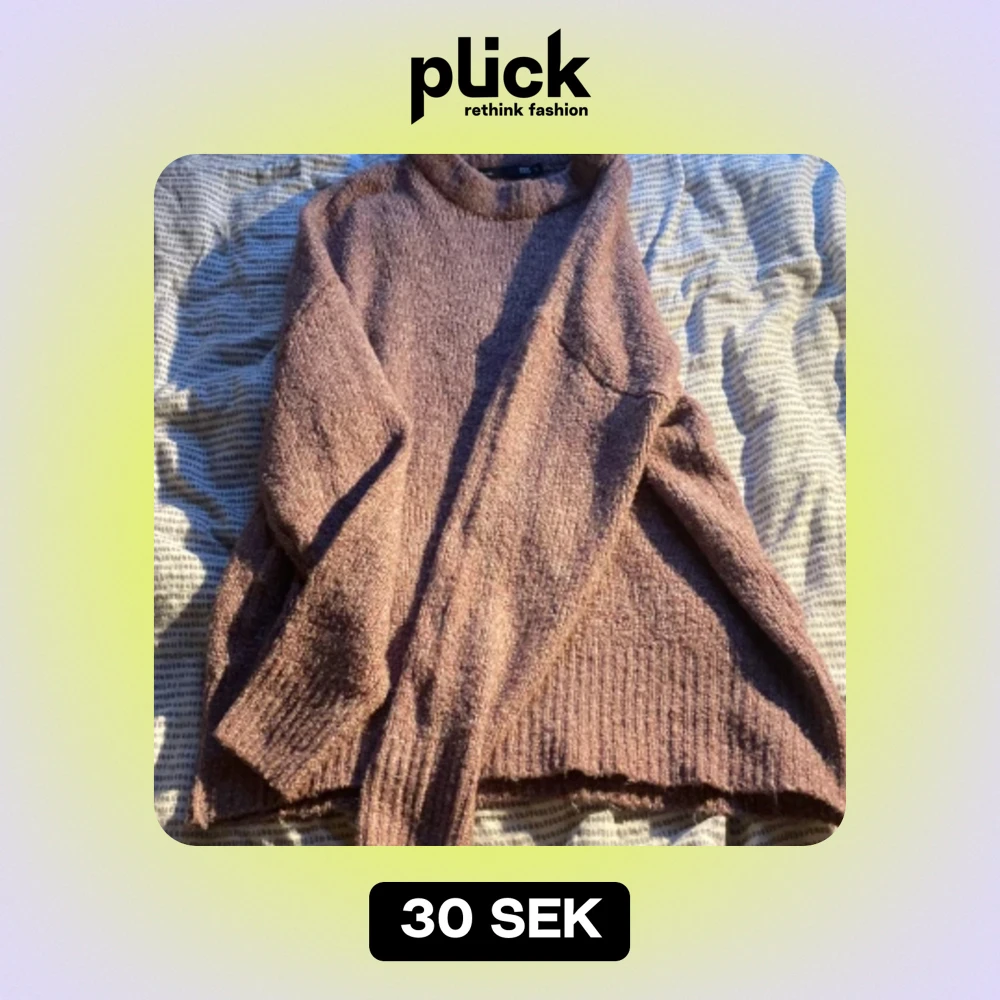 En fin stickad tröja i storlek S är jättestor så att den kommer passa till en som kommer ha XL också .