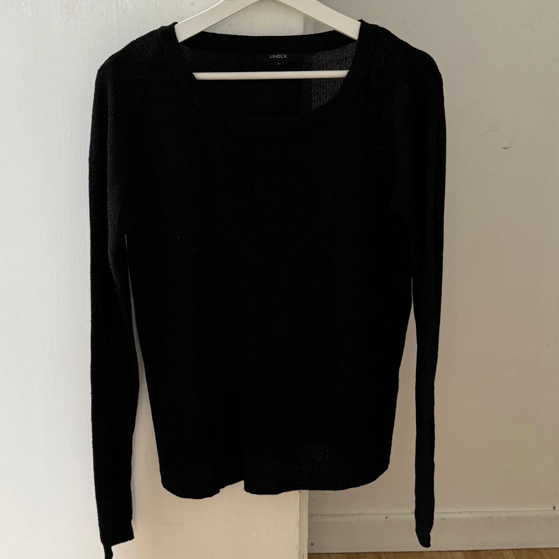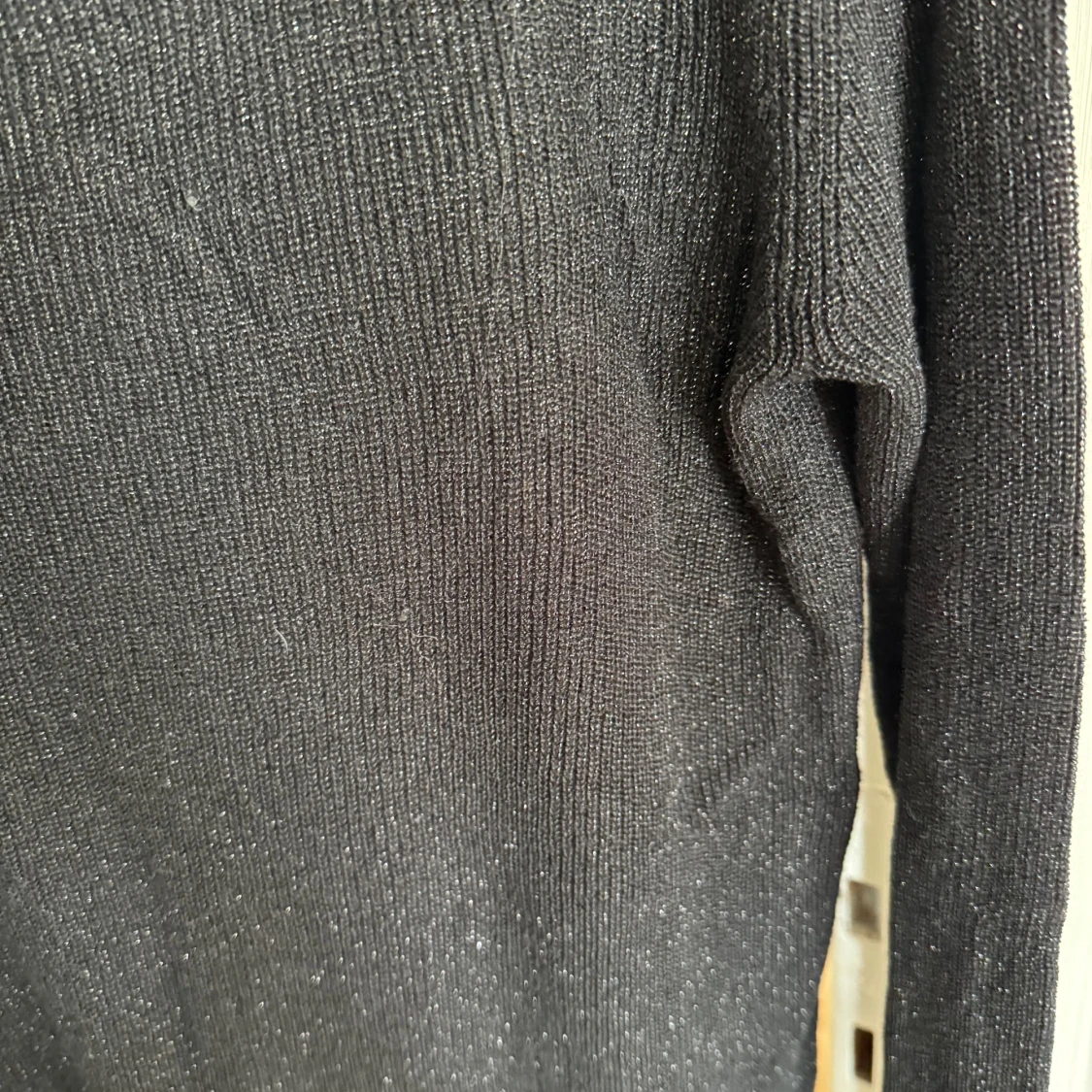 En svart glittrig stickad tröja från Lindex som inte kommer till användning🩷