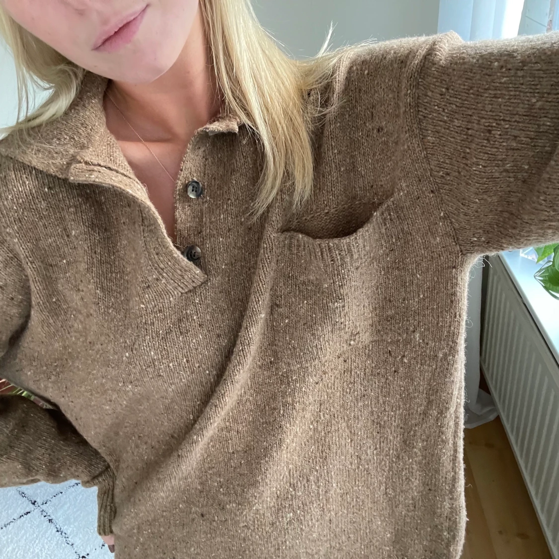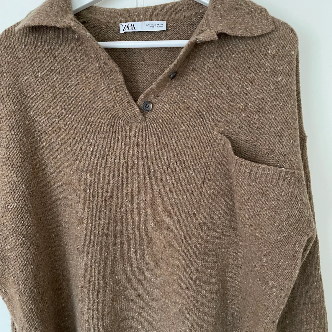 Säljer denna stickade tröja med ficka på bröstet och svarta knappar vid kragen från Zara, använd 2 gånger och är i nyskick😊