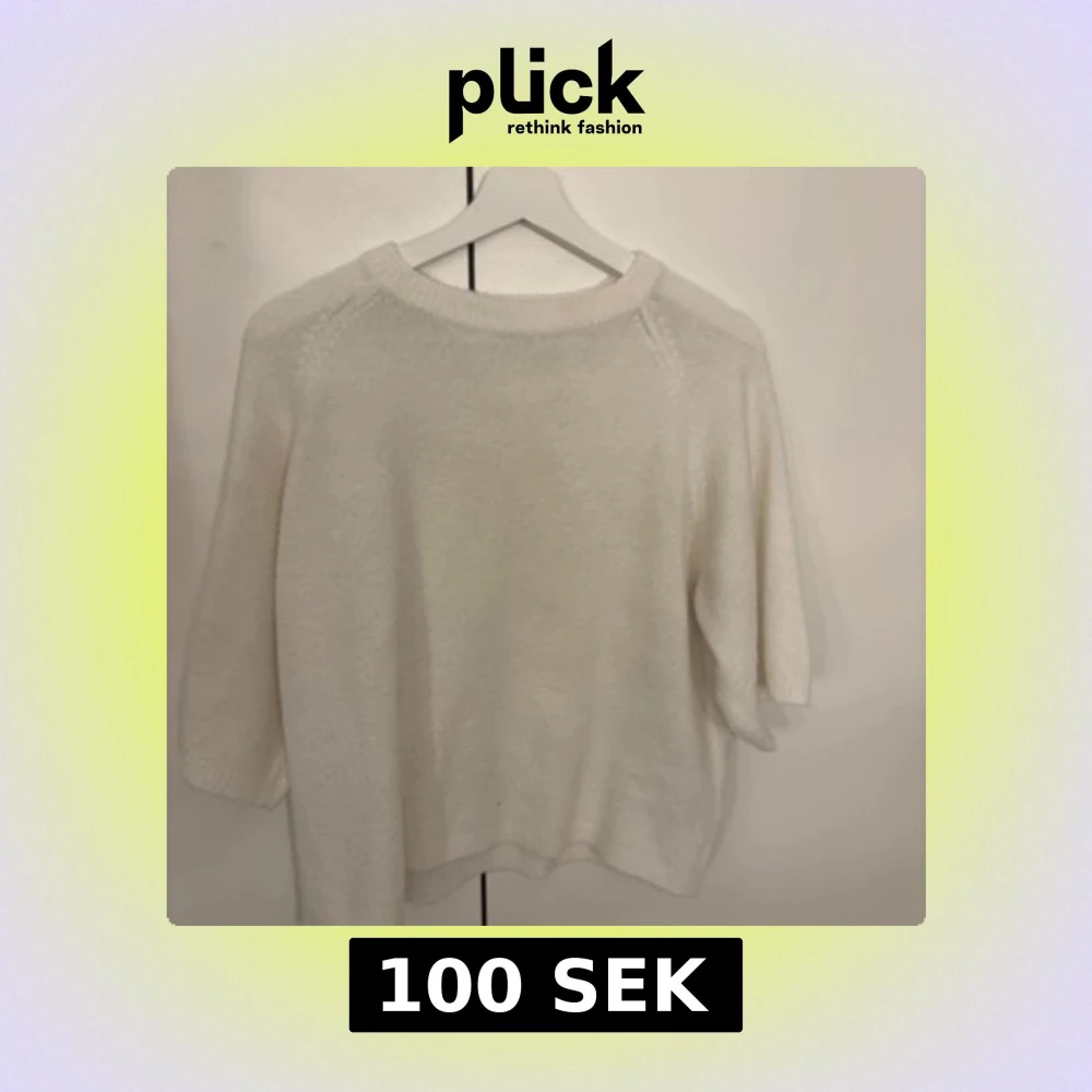 Mysig vit stickad tröja med rund halsringning och trekvartsärmar. Tröjan har en enkel och clean design som är lätt att matcha med olika outfits. Perfekt för lager-på-lager och chill dagar.