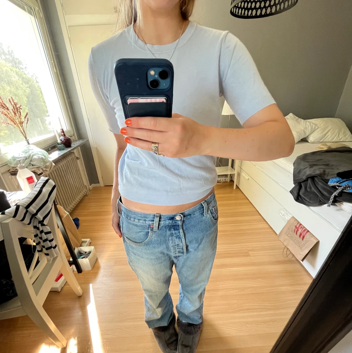 Ljusblå stickad kortärmad från Zara i storlek S💕💕