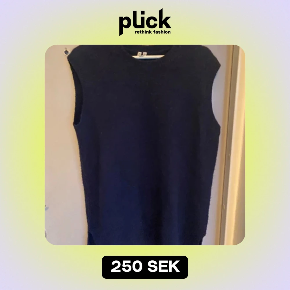 Lång stickad väst i marinblått från arket. Jättefint skick. Passar även en M/L pga oversize. Köparen står för frakt.