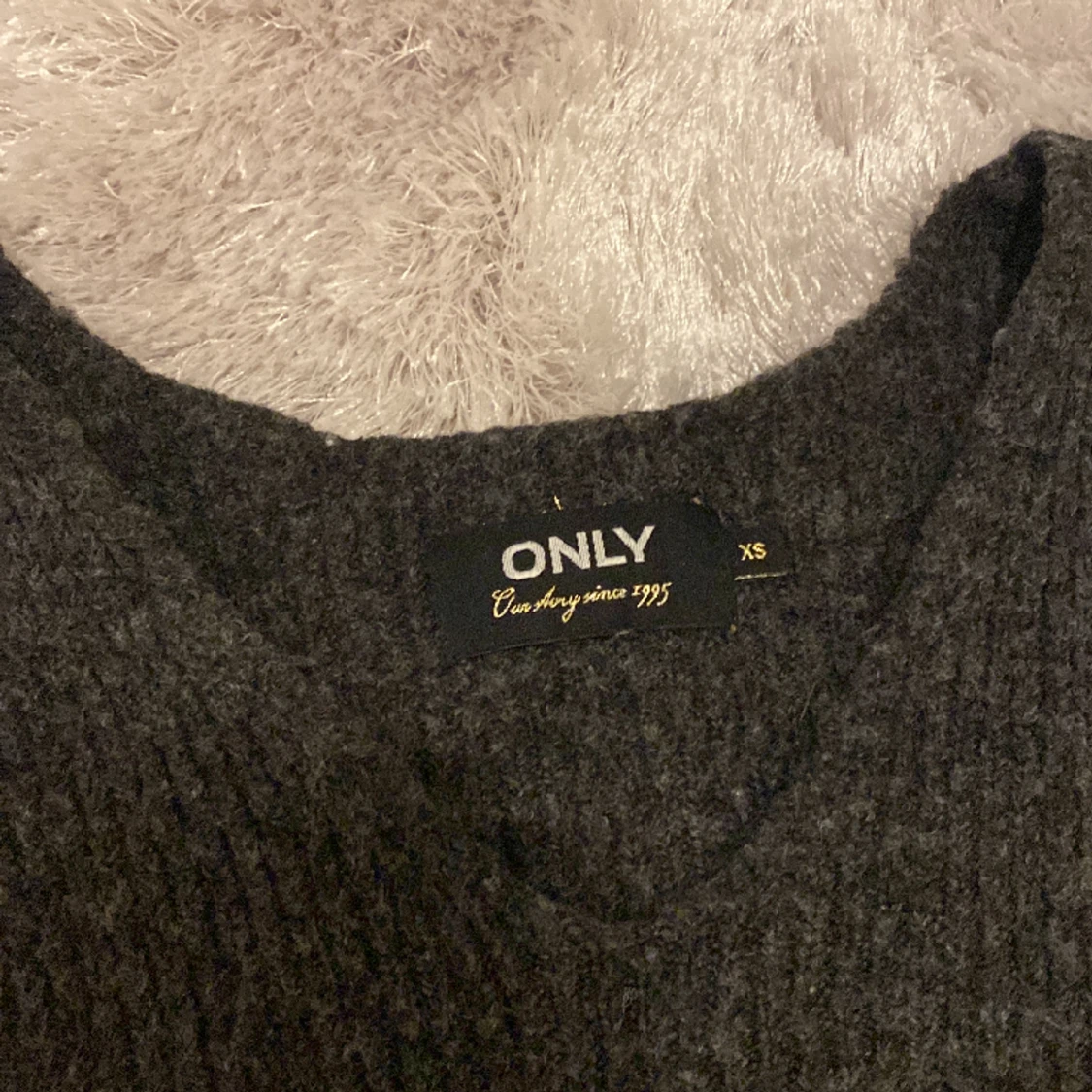 Mörk grå jätte fin skön stickad tröja som är lite v-ringad😍. Köpt från only och är i bra skick! Storlek Xs men passar S också! 🫶(!pris kan diskuteras!)