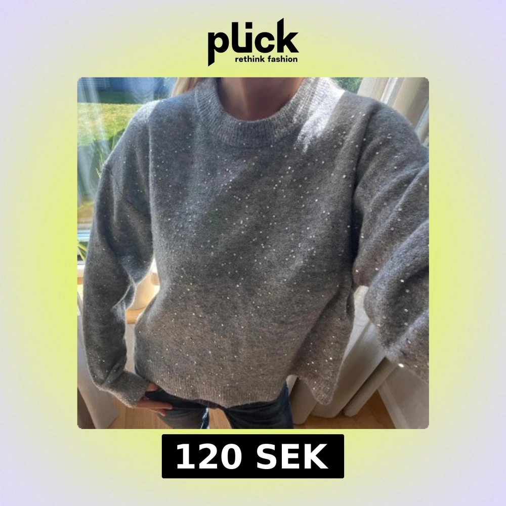 Supermysig grå stickad tröja med glittriga paljetter! Jättefin o mysig tröja till hösten!