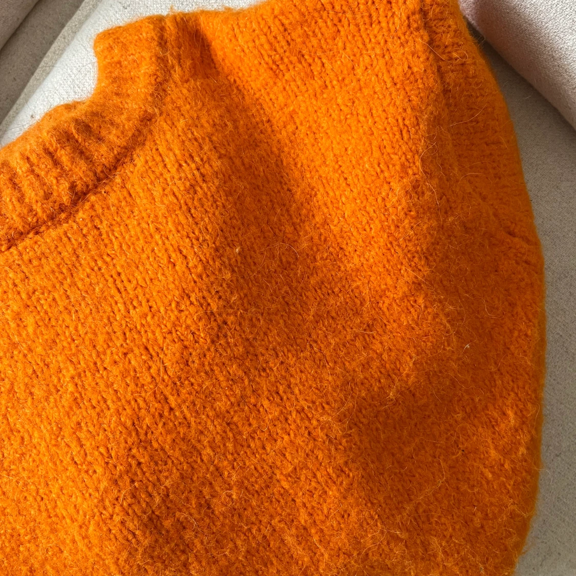 Helt underbar stickad tröja från HM i orange. Alpacka blandning. Perfekt att slänga över klänningen nu när sommarvärmen inte riktigt nått oss ännu 😍