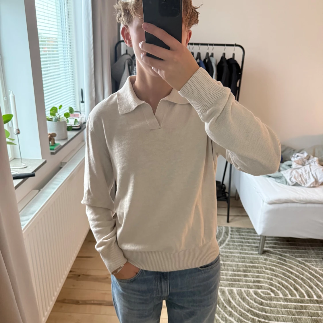 Snygg beige pikétröja från Bläck i mjuk bomull. Tröjan har klassisk krage, lång ärm och ribbade muddar vid ärmslut och nederkant. Perfekt för en clean och stilren look, funkar året runt och är lätt att matcha med jeans eller kostymbyxor.