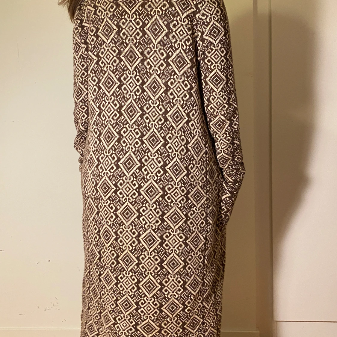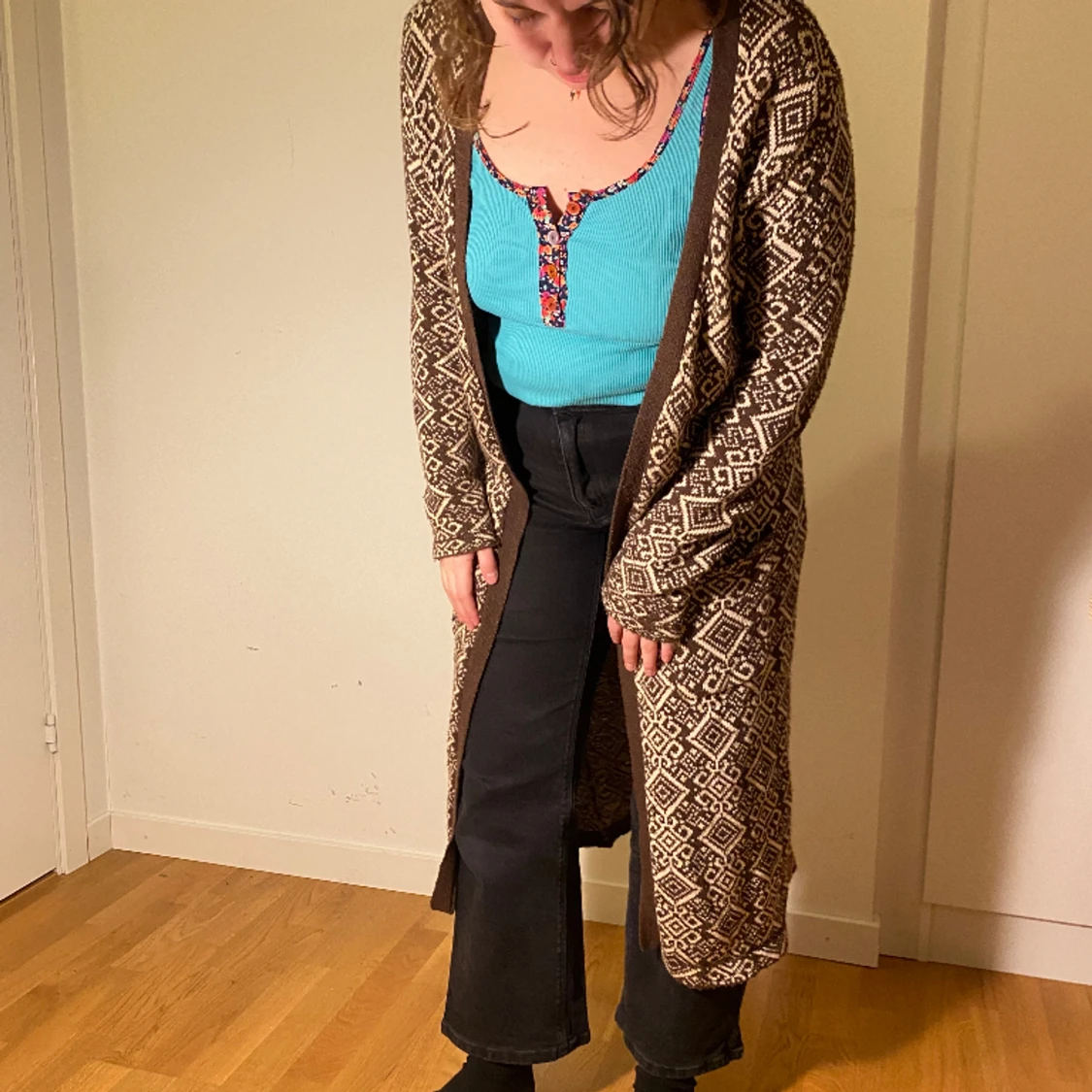 Lång, värmande kofta under vinterhalvåret Saknar märkning