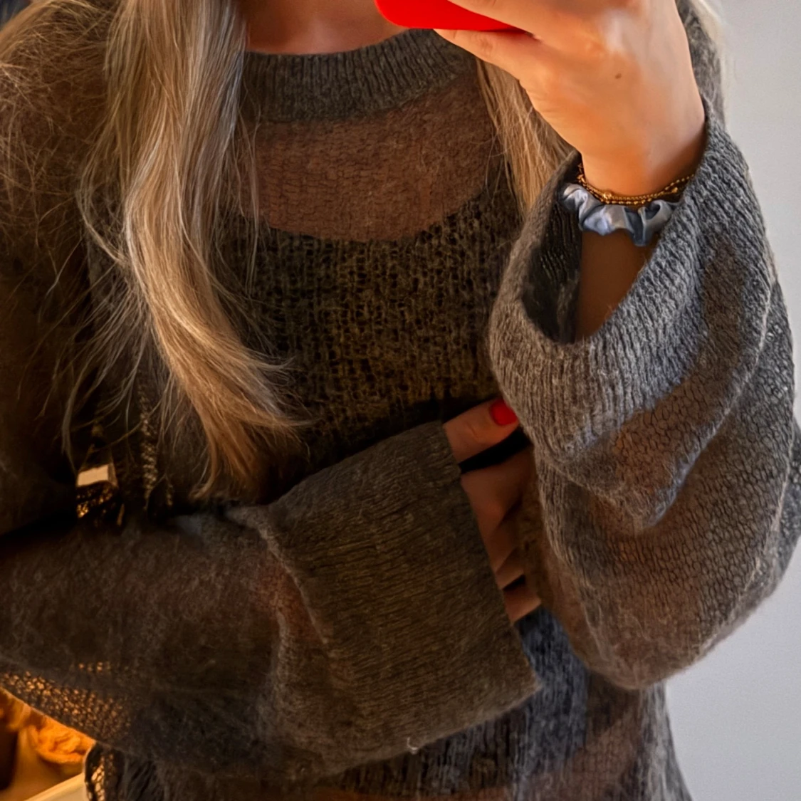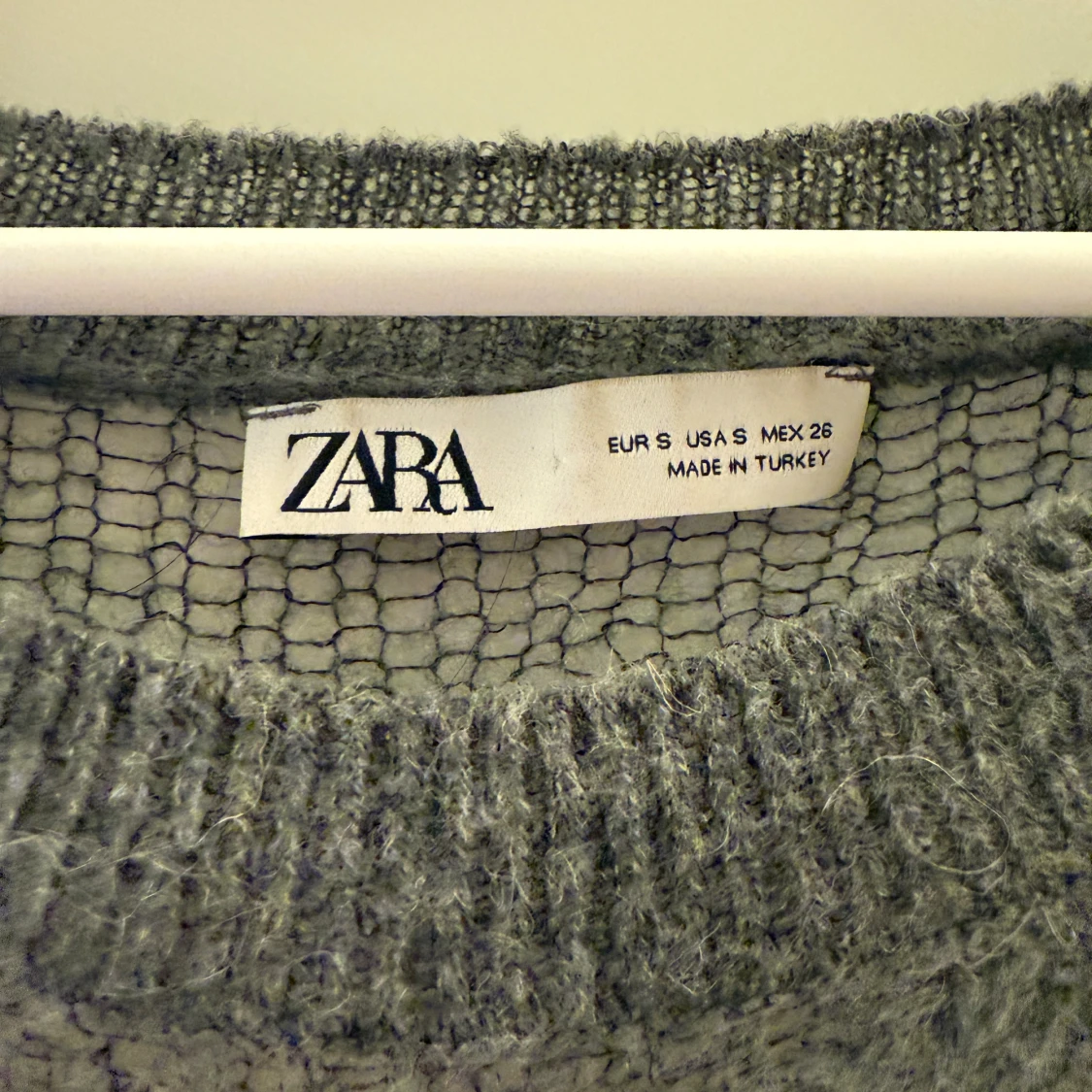 En grå stickad tröja från Zara i väldig gott skick! Den är ganska tunn och genomskinlig men ändå lagom varm, och blir supersnygg med tex ett linne under!