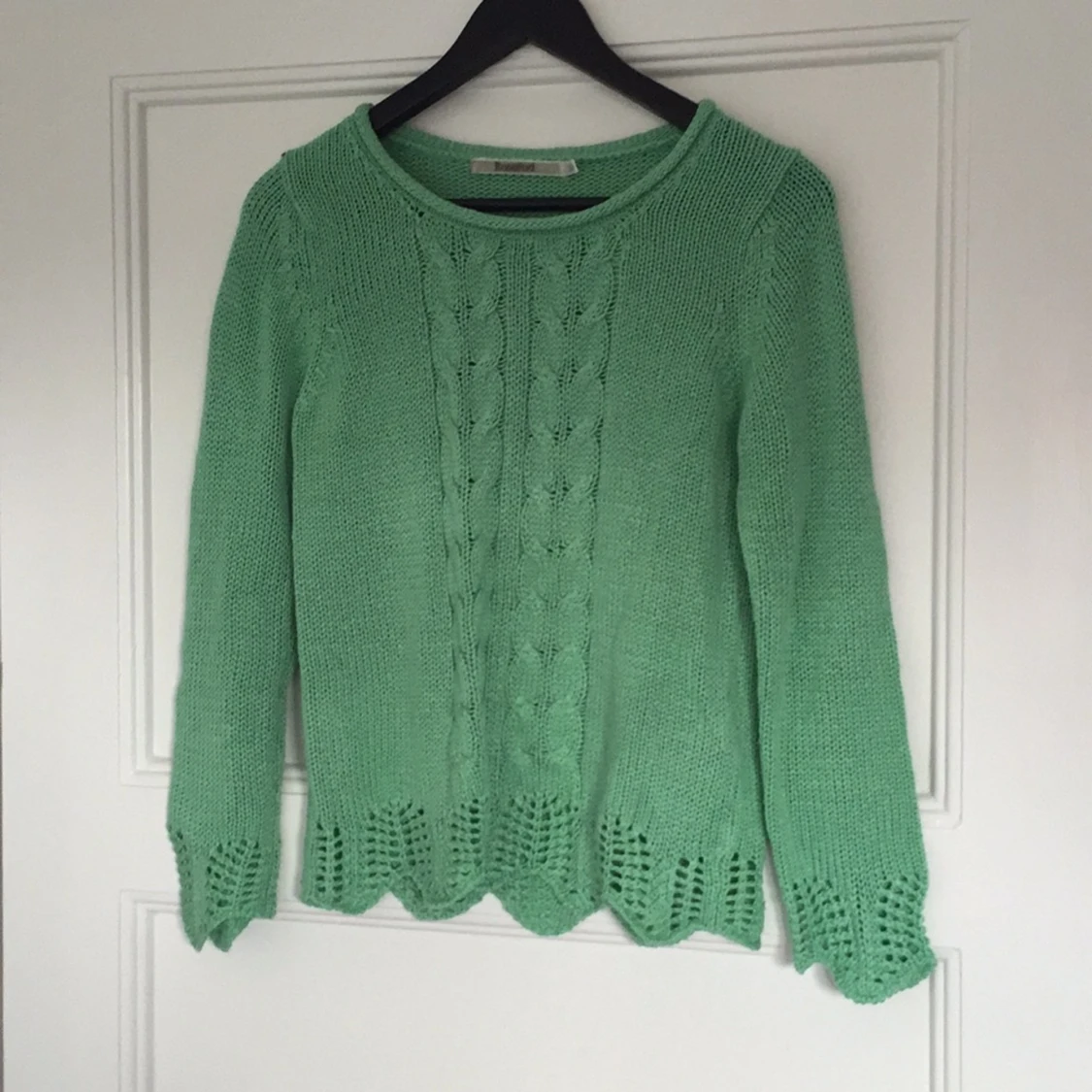 En grön stickad tröja. Perfekt till solkyssthy i sommar.