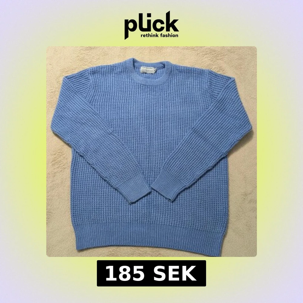 Säljer en blå stickad tröja från Cotton & Silk i storlek M. Tröjan har ett grovt, strukturerat stickmönster och rund halsringning. Perfekt för dig som gillar en klassisk och enkel stil med lite extra textur. Den är välskött och i bra kvalité!