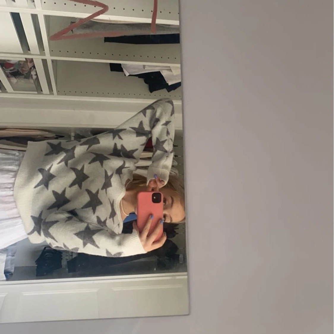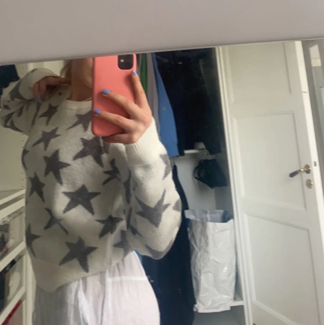 Stickad vit tröja med gråa stjärnor på. Använd fåtal gånger pga inte min stil riktigt, därmed bra skick.