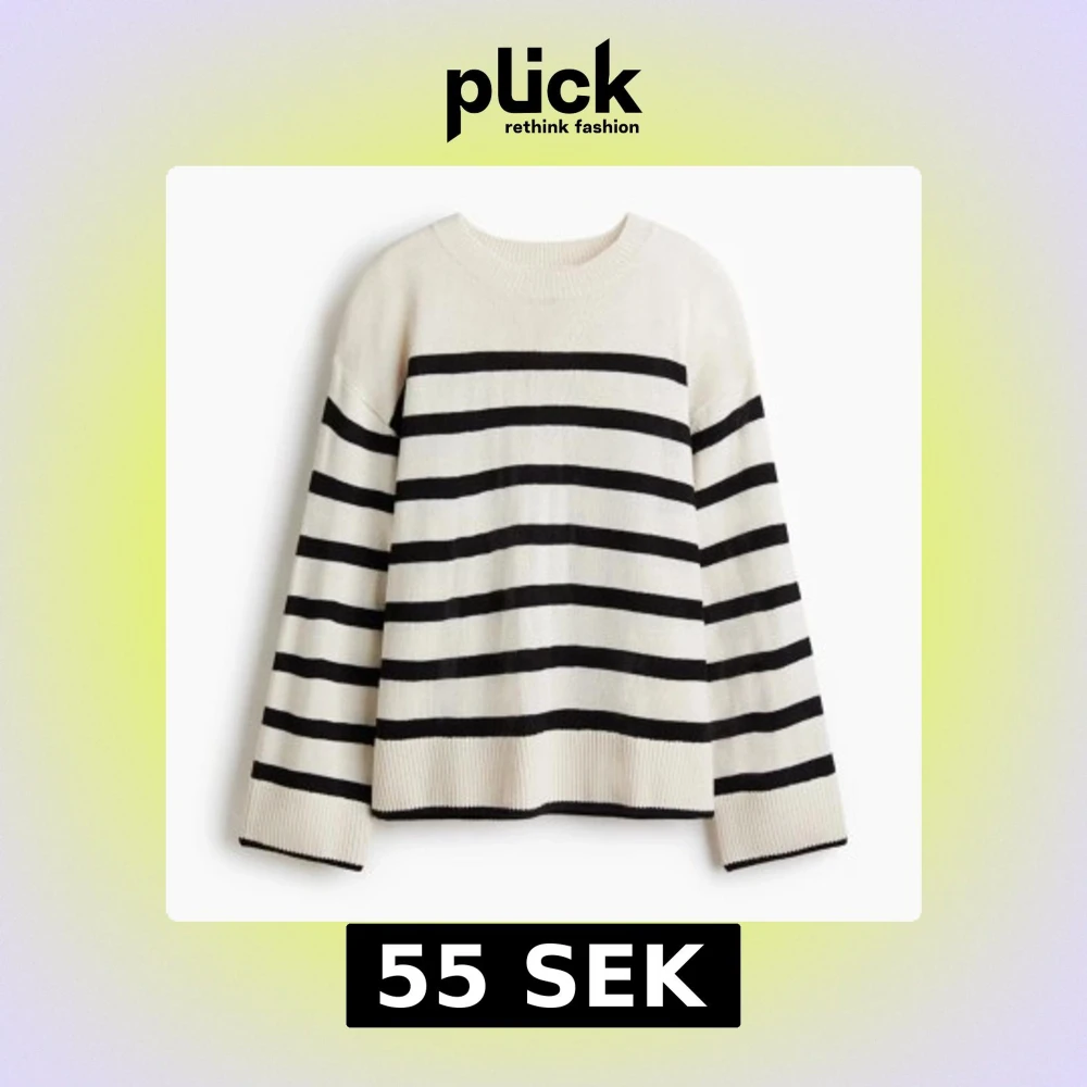 Snygg stickad tröja från Divided i vitt/kräm med svarta horisontella ränder. Tröjan har rund halsringning, långa ärmar och ribbade muddar vid ärmslut och nederkant. Perfekt för dig som gillar klassisk och avslappnad stil.