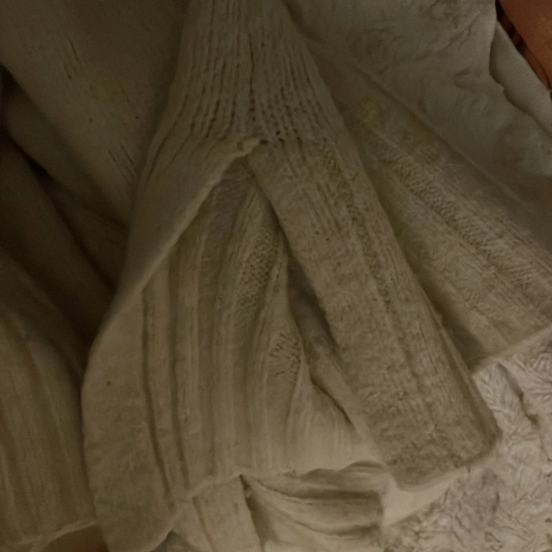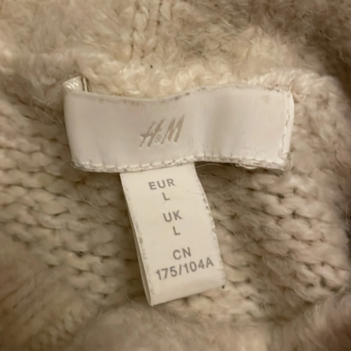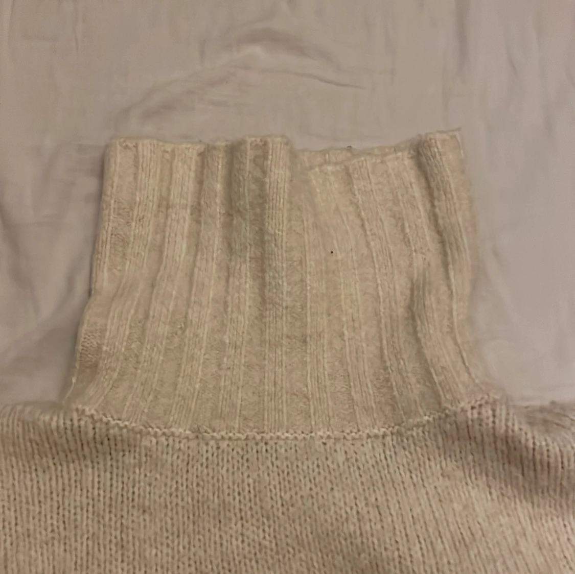 Mysig vit stickad polotröja från H&M med ribbade detaljer och slit längst ner på båda sidorna. Tjock och varm stickad