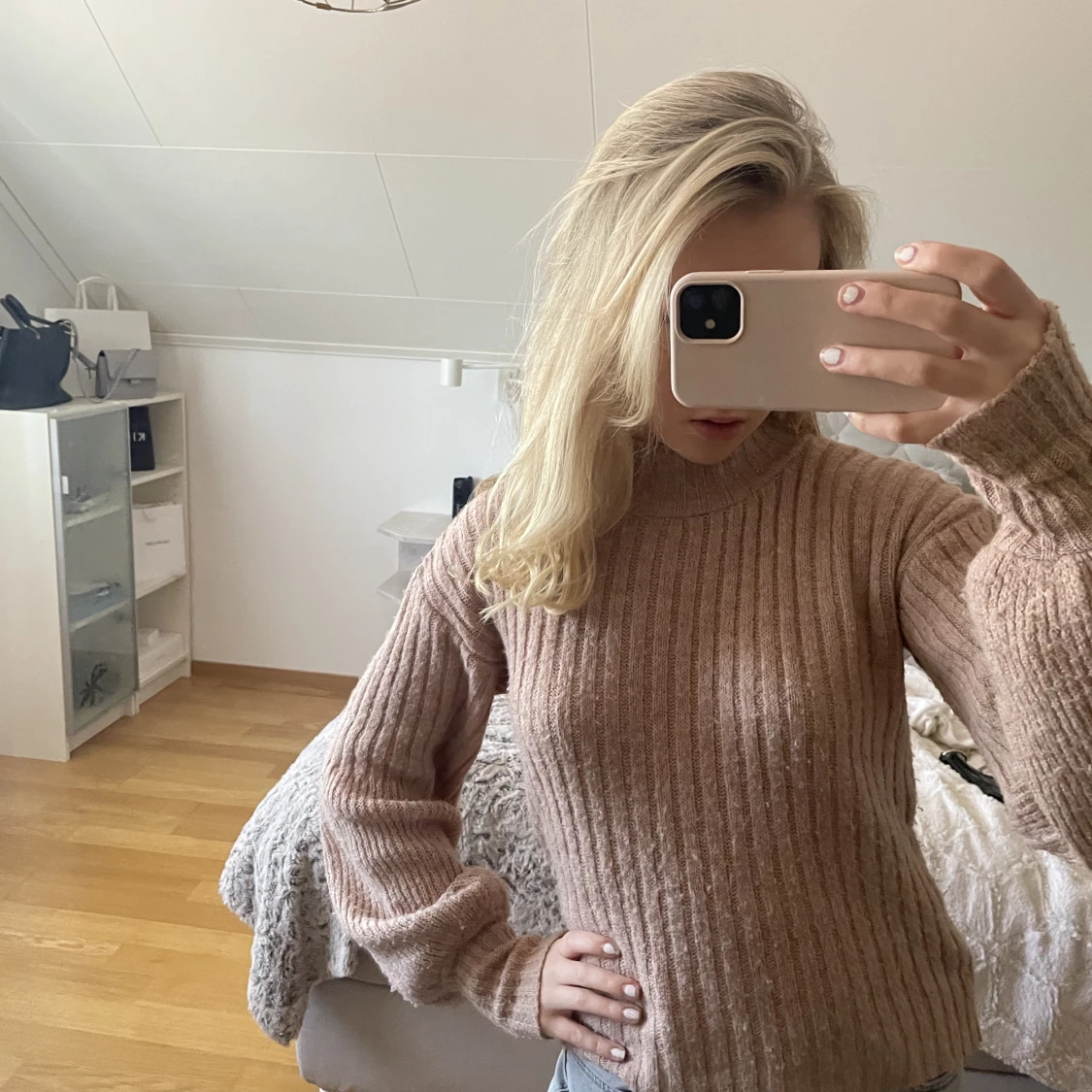 Tryck gärna på ”KÖP NU”. Rosa/beige stickad tröja med ballongärmar från nakd. Jättemysig❤️storlek XXS men sitter super på mig som brukar ha S.