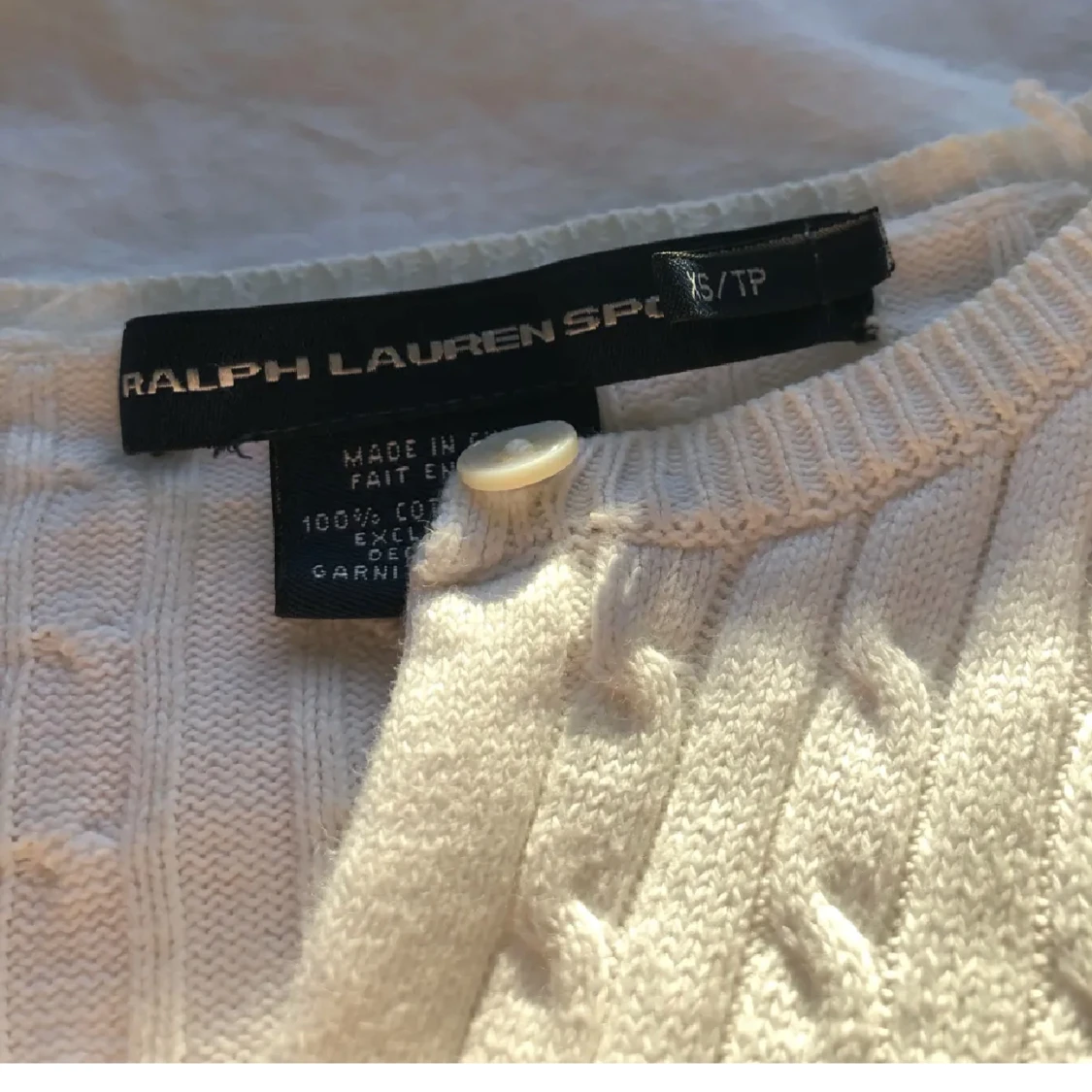Jättefin stickad Ralph lauren kofta i bra skick!! Nypris va ca 1500-2000kr! Startar budgivning om fler är intresserade💕(det svarta är ingen fläck bara nått som hamna där kan skicka fler bilder!!!)