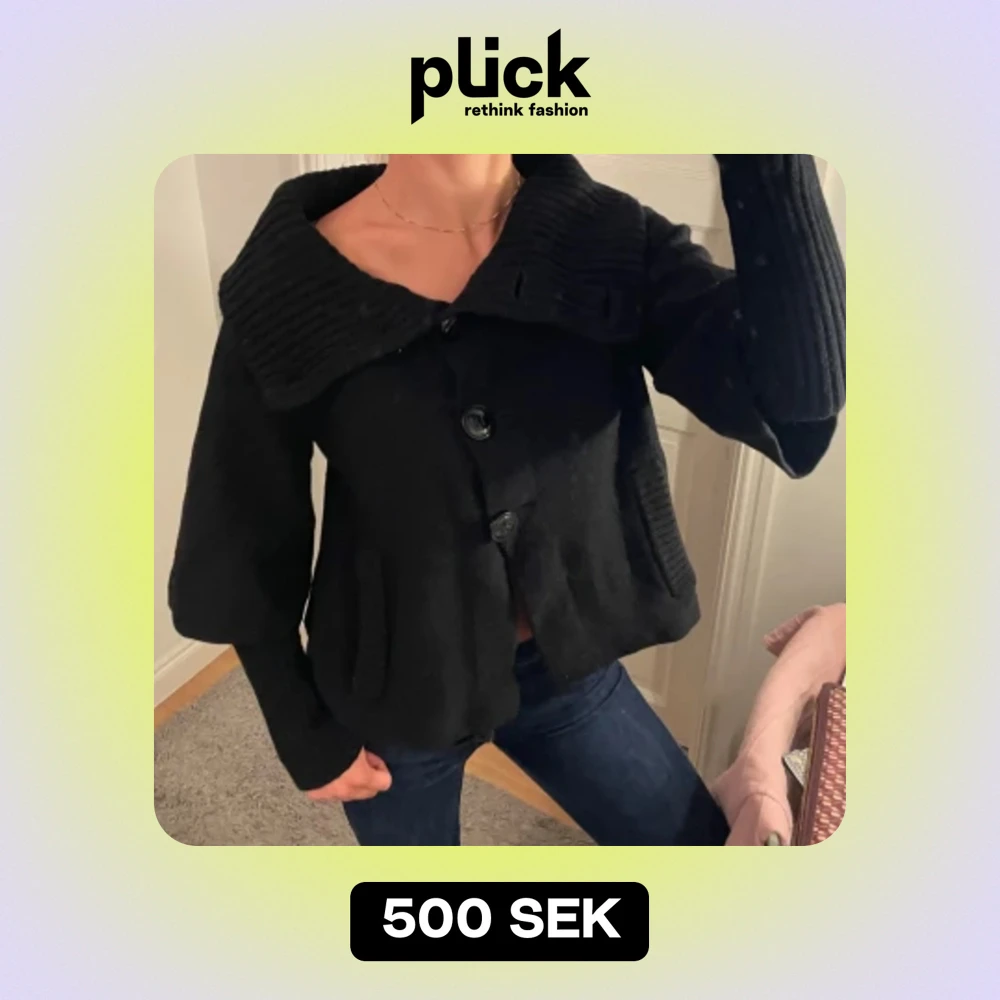 Svart tjock kofta med trekvartsärmar och insydda långa armar. Hög krage, går att ha på många olika sätt. Köp direkt 500kr!💖