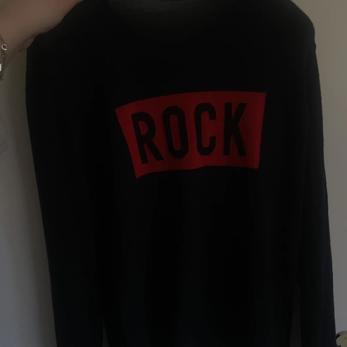Tröjan är i bra skick den har dessvärre ett litet hål på framsidan vilket har lett till det låga priset. Jag köpte tröjan för 2500kr. Tröjan ser svart ut på bild men är mörkblå