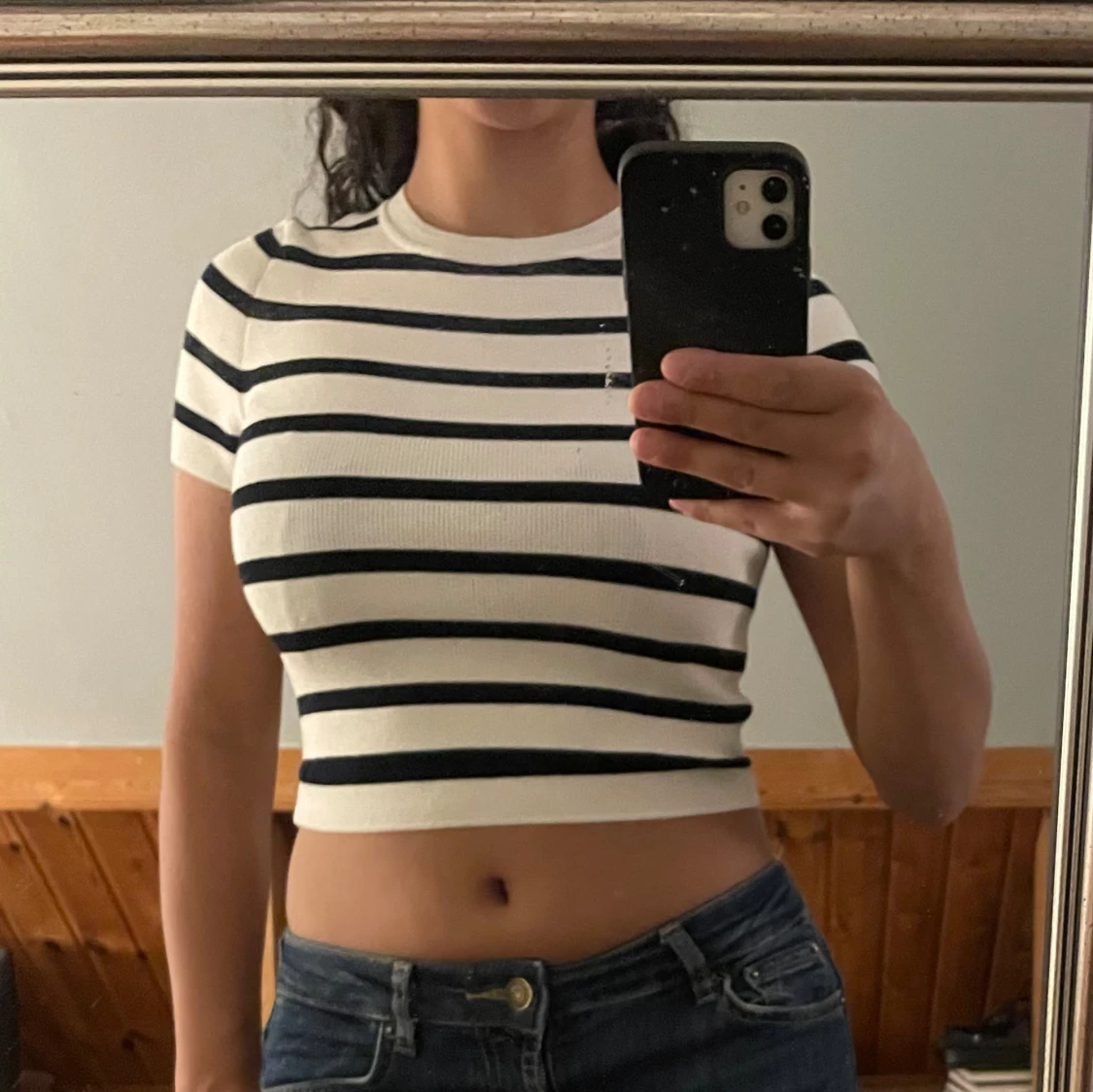Svart, randig, vit, stickad - tröja från zara. Säljer pågrund av att den är lite för kort för min smak. Ränderna är lite beige/vit aktiga. Den har använts fåtal gånger, ordinarie priset är 279kr, säljer den för 100kr.💗