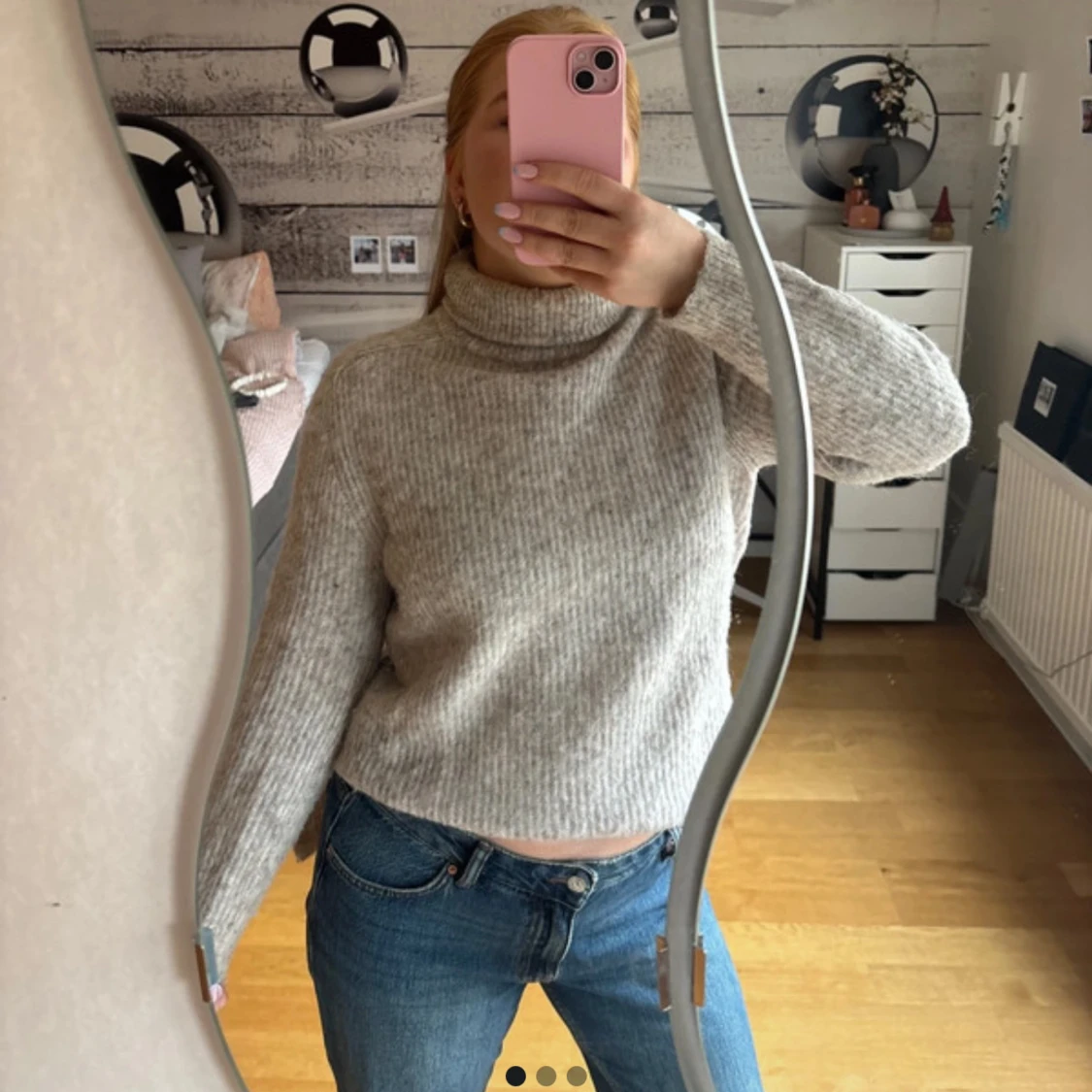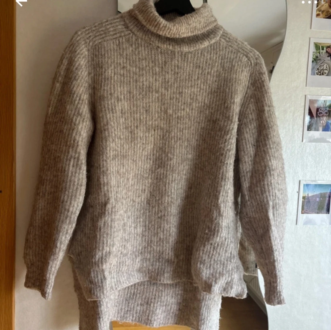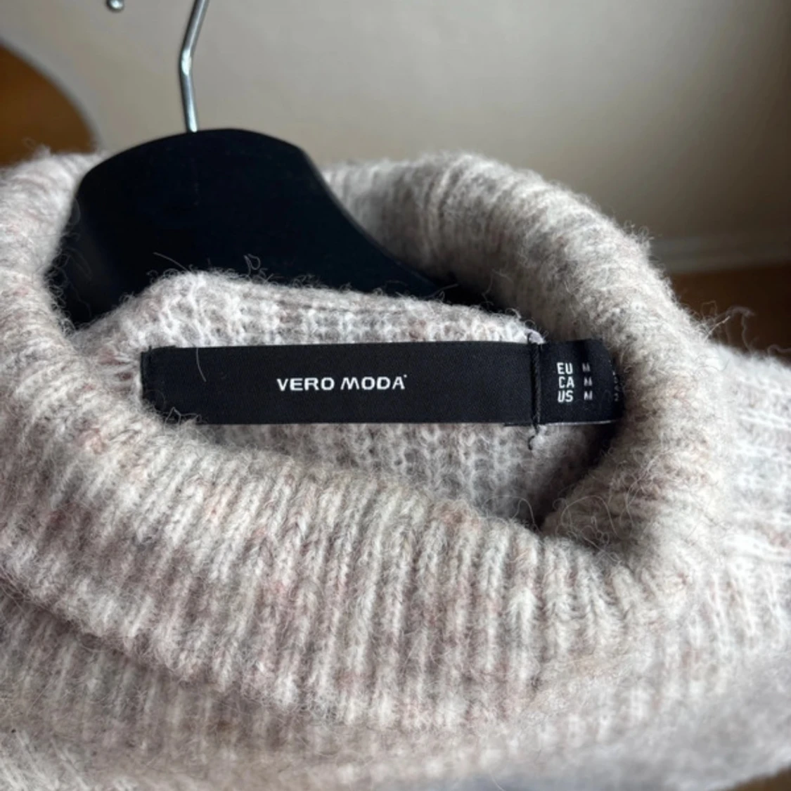 Mysig beige polotröja från Vero Moda i storlek M. Tröjan är ribbstickad med lång ärm och har en loose passform. Perfekt för kyliga dagar och enkel att styla med jeans eller kjol. Materialet är stickat och känns mjukt mot huden.