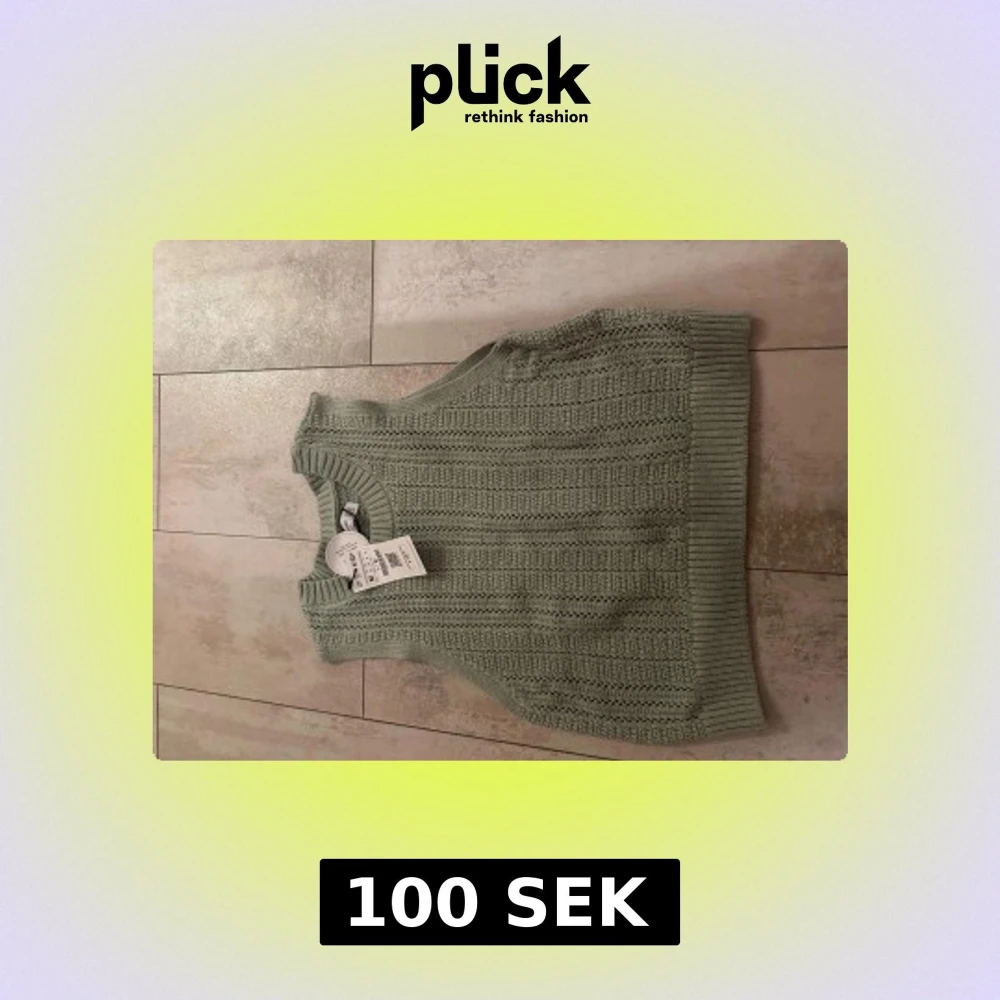 Snygg ljusgrön stickad tröja från Stradivarius i storlek M. Modellen är ärmlös med ribbade kanter vid hals och nederkant. Tröjan har ett diskret hålmönster och är gjord i 100% bomull, perfekt för lager-på-lager under vår och höst.