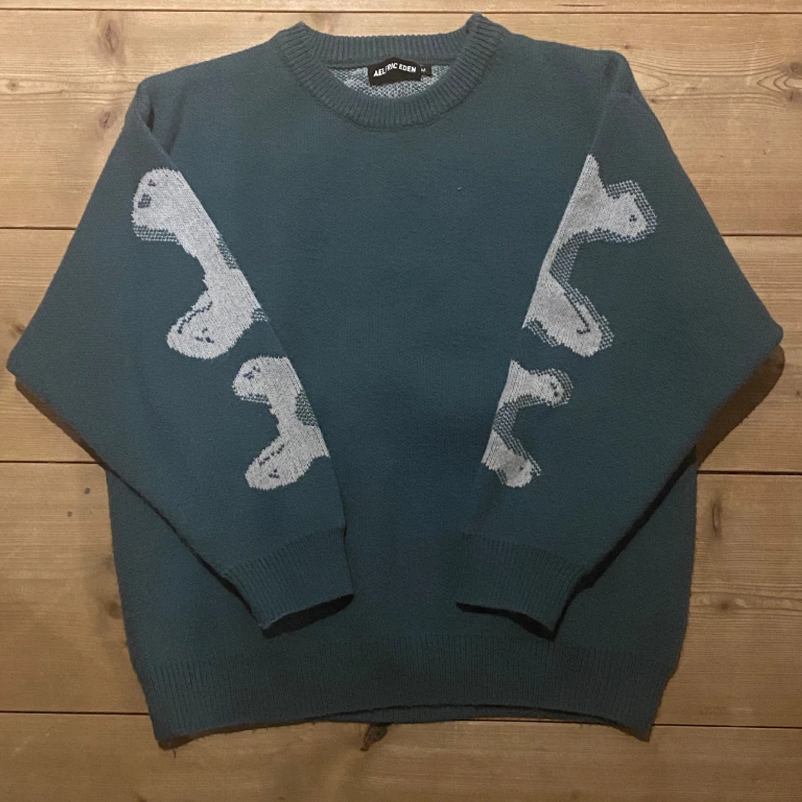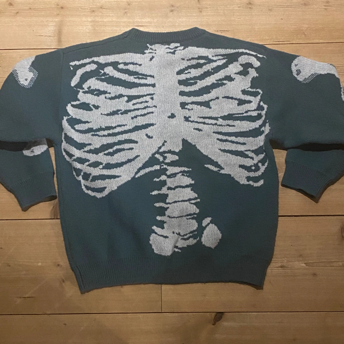 Aelfric Eden Stickad tröja med skelett mönster. Knappt använd, endast testad några gånger så den är i mycket bra skick. Nypris: 700kr Mått: 70cm i längden, armlängd 53cm