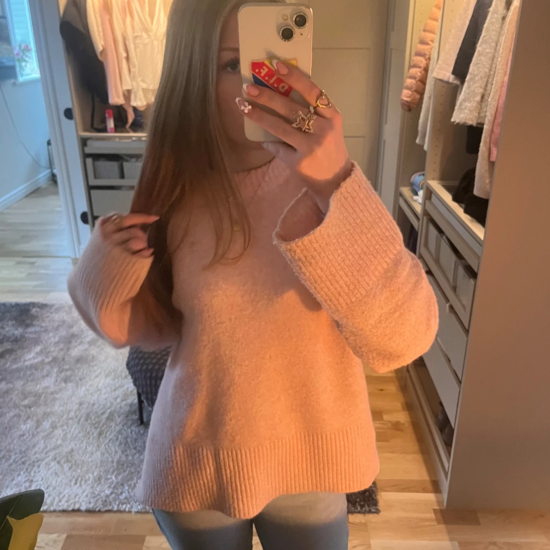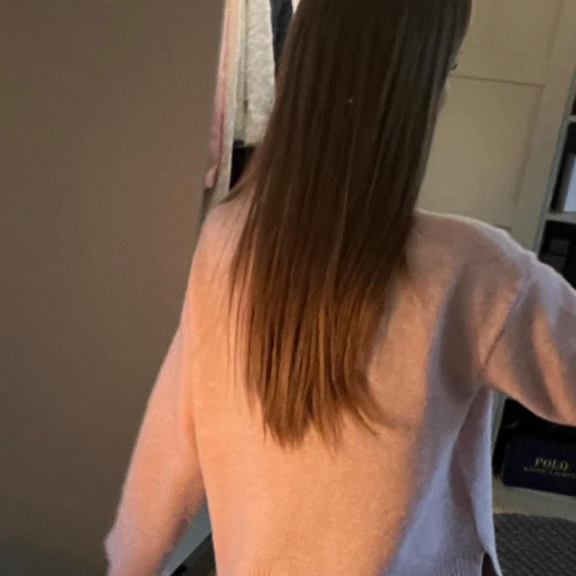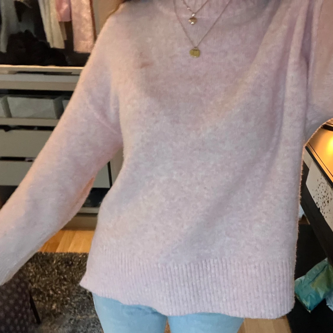 fin ljusrosa stickad tröja med snitt på kanterna! inte använd många gånger, de är en fläck på tröjan men den går bort och jag tvättar såklart den innan jag skickar! köpte den för 400❤️