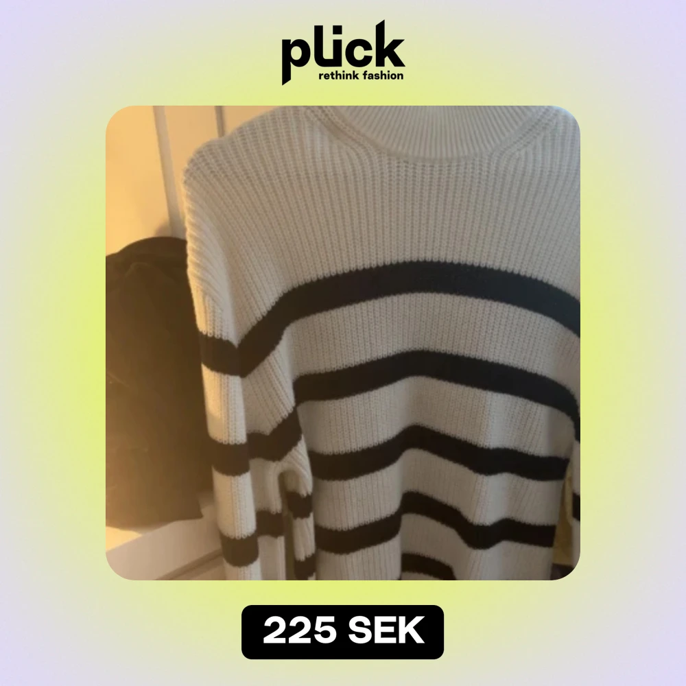 Säljer en supermysig stickad tröja från KappAhl i storlek XS. Den är vit med svarta ränder och har en skön, lös passform. Perfekt för höst och vinter! Helt nytt skick, använd en gång.🖤🤍