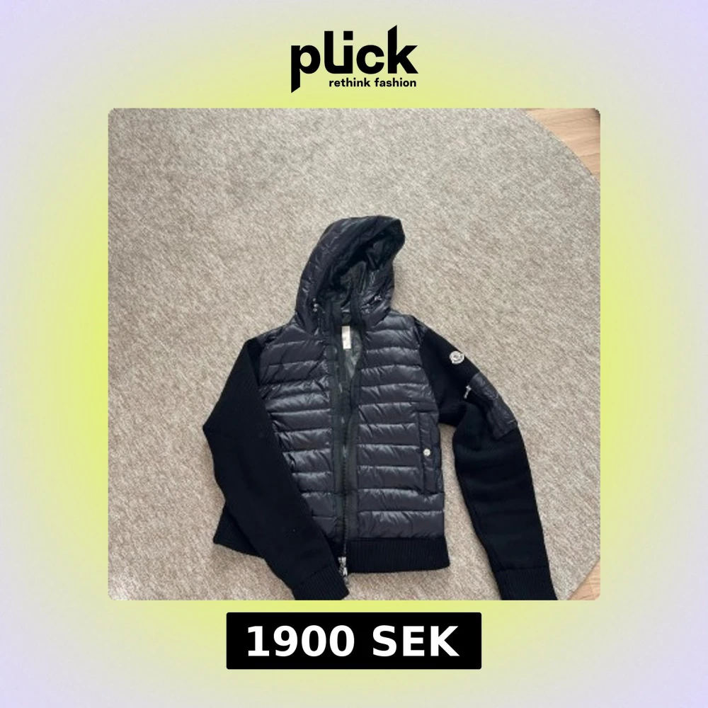 Svart pufferjacka från Moncler med stickade ärmar och huva. Jackan har quiltad front i glansigt material, dragkedja och Moncler-logga på ärmen. Snygg och sportig look med ribbade muddar och praktiska fickor med knappstängning.