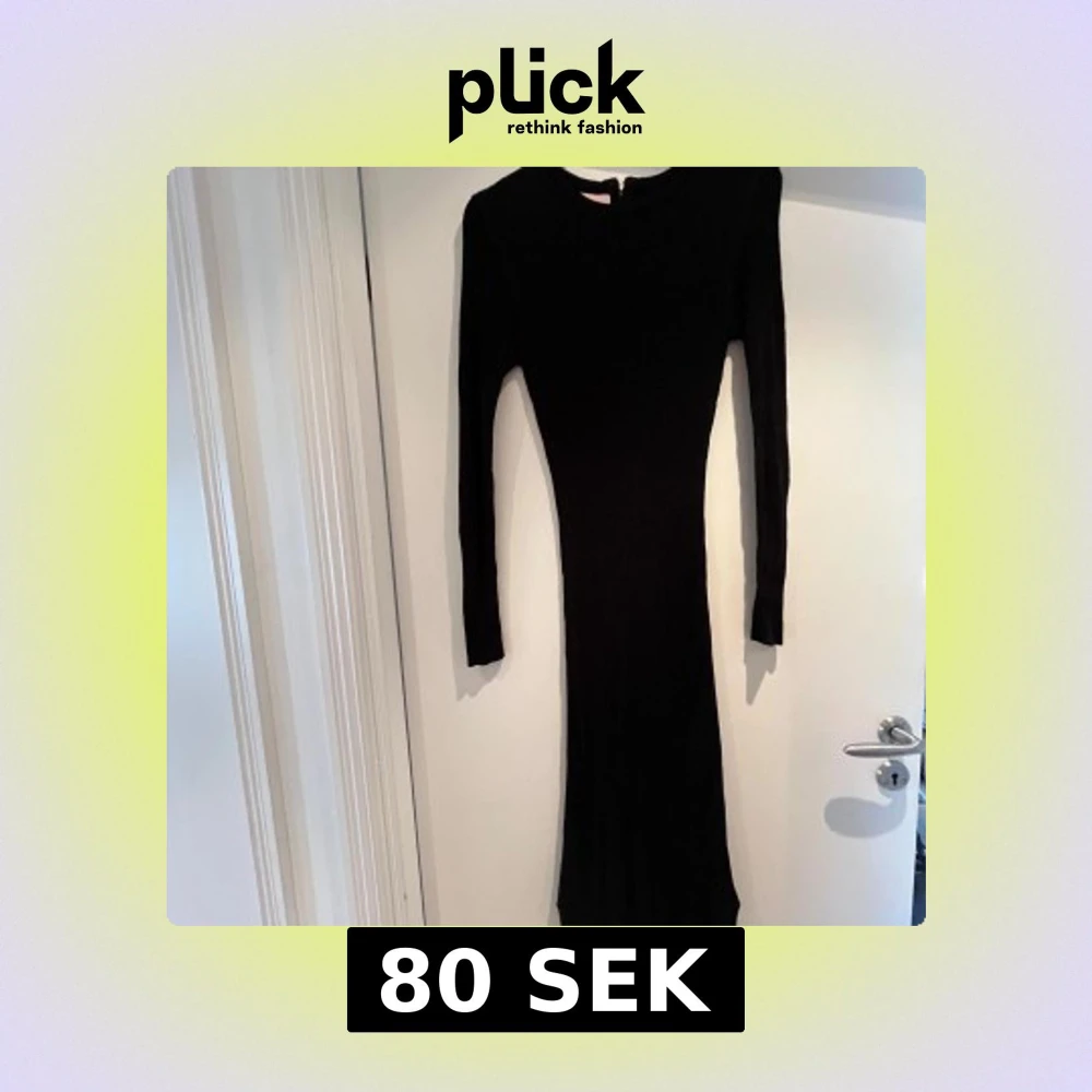 Svart långklänning från C'est la vie i ribbstickat material. Klänningen har lång ärm, figurnära passform och har slits på båda sidorna nertill.