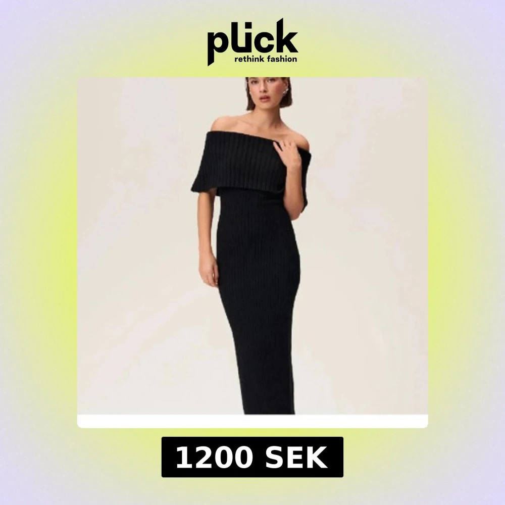 Supersnygg svart ribbad långklänning med offshoulder-design. Klänningen är från adoore och har använts 2-3 gånger