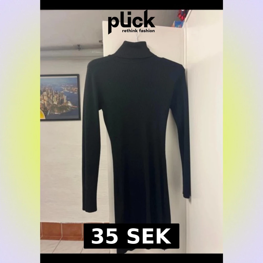 Säljer en svart, ribbad klänning med polokrage och lång ärm. Klänningen har en slim passform och är tillverkad i ett stickat material som sitter snyggt mot kroppen. Perfekt för dig som gillar minimalistisk och stilren look. Superfin till nyår.