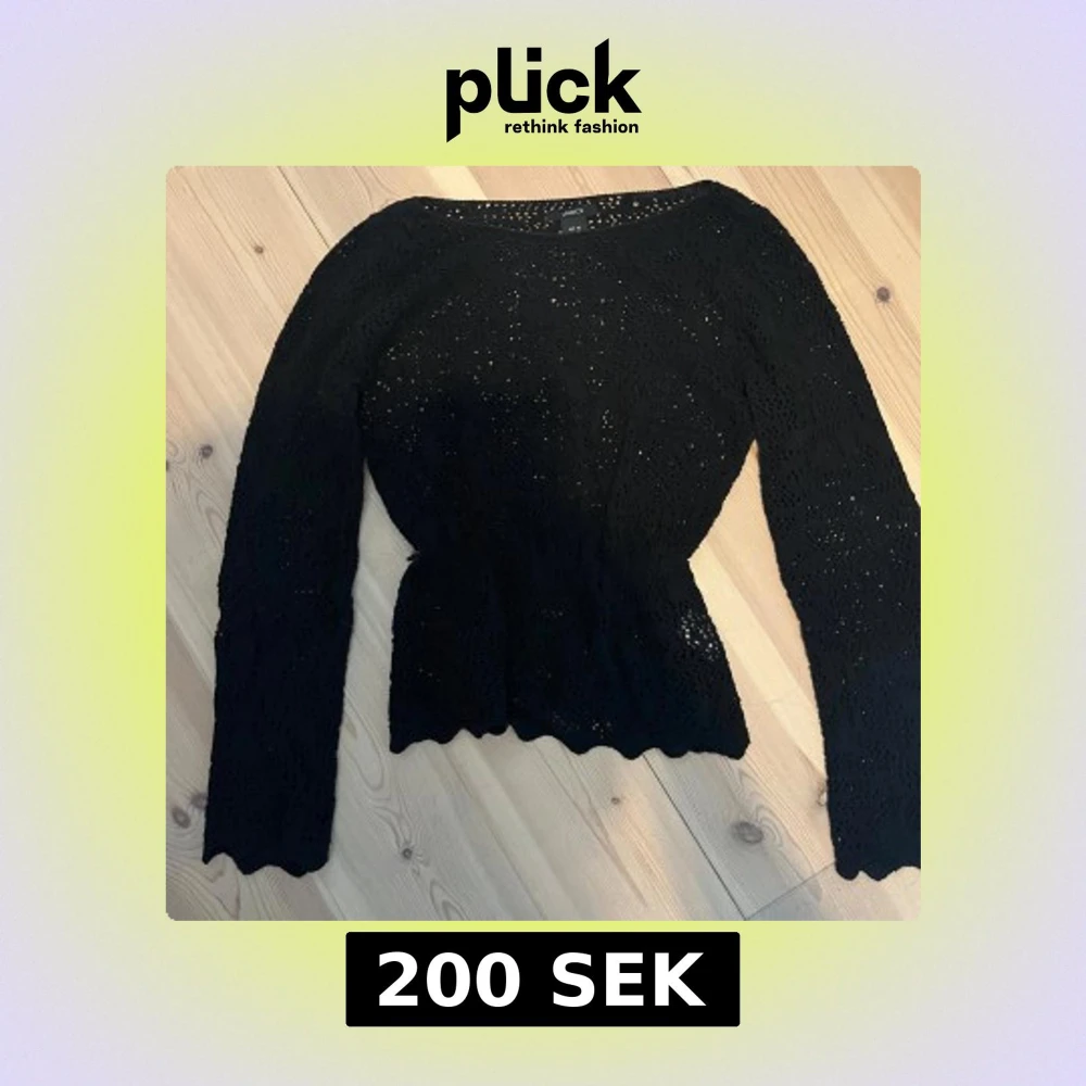 Supersnygg svart stickad tröja från Lindex i spetsmönster. Tröjan har lång ärm, markerad midja och vågig nederkant. Perfekt för dig som gillar en feminin och trendig look. Passar till både jeans och kjol!