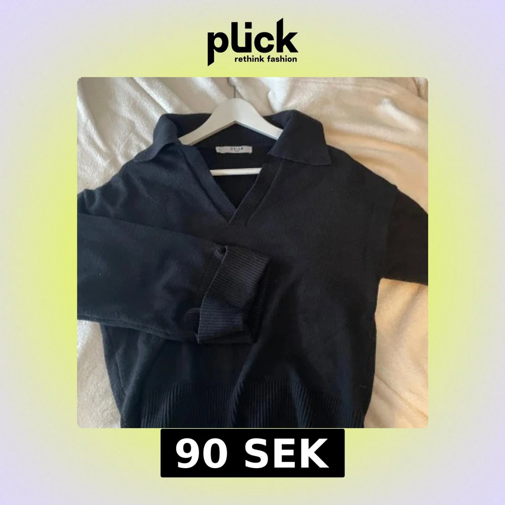 Snygg svart stickad polotröja från NA-KD med v-ringning och krage. Tröjan har långa ärmar och ribbade muddar vid ärmslut och nederkant. Passar även S