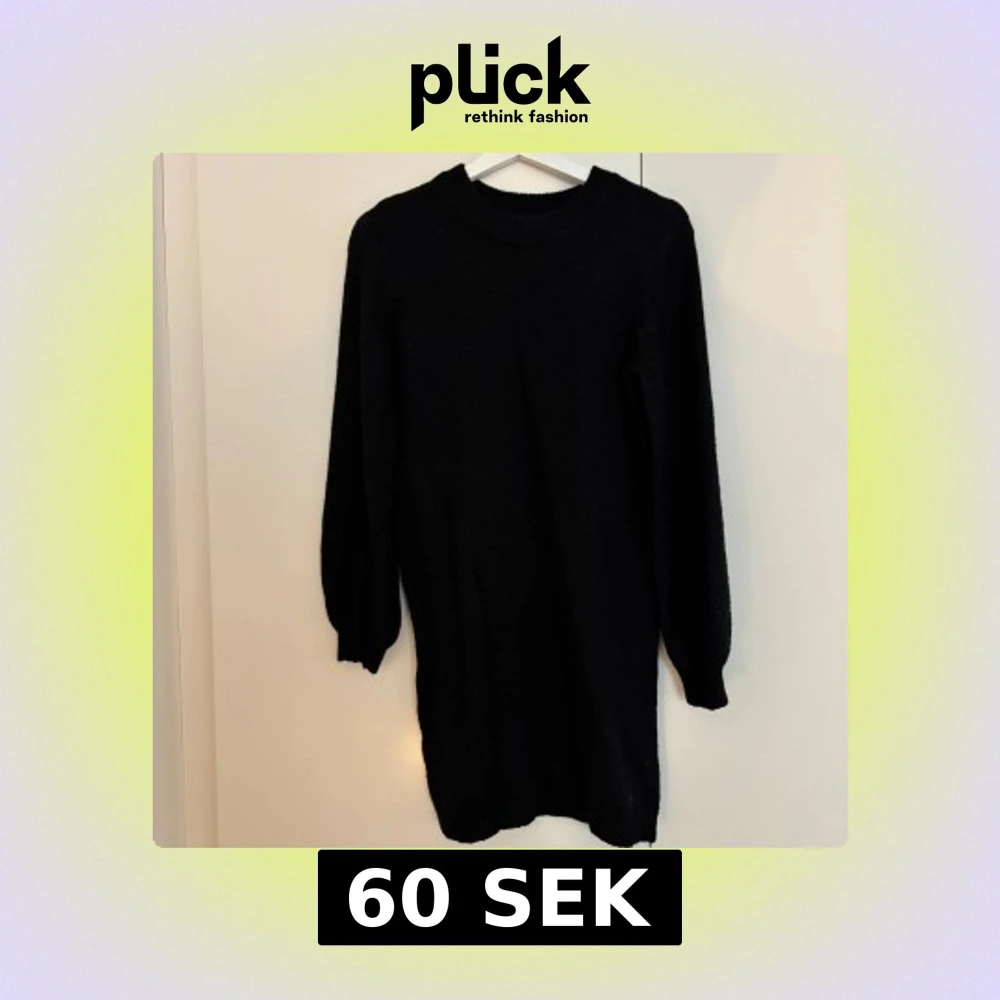 Mysig svart stickad klänning från Object med rund halsringning och långa ärmar. Perfekt för lager-på-lager och enkel att styla med boots eller sneakers. Modellen är rak och har ribbade detaljer vid hals och ärmslut.