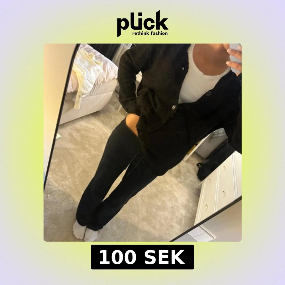 Mysig svart stickad cardigan jacka med knappar framtill. Jackan har en loose passform och långa ärmar. Jätteskön och skit snygg!🥰