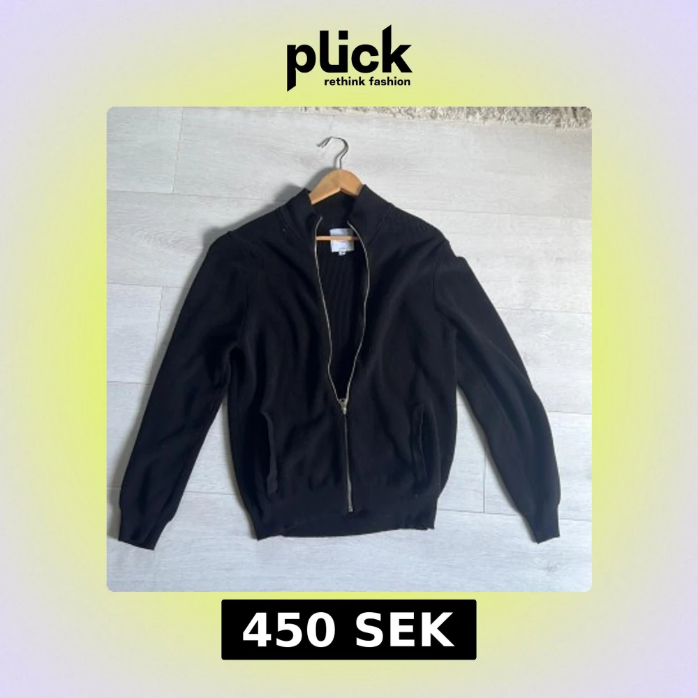 Svart stickad kofta från Erla of Sweden med hel dragkedja framtill. Använd men fortfarande bra skick!