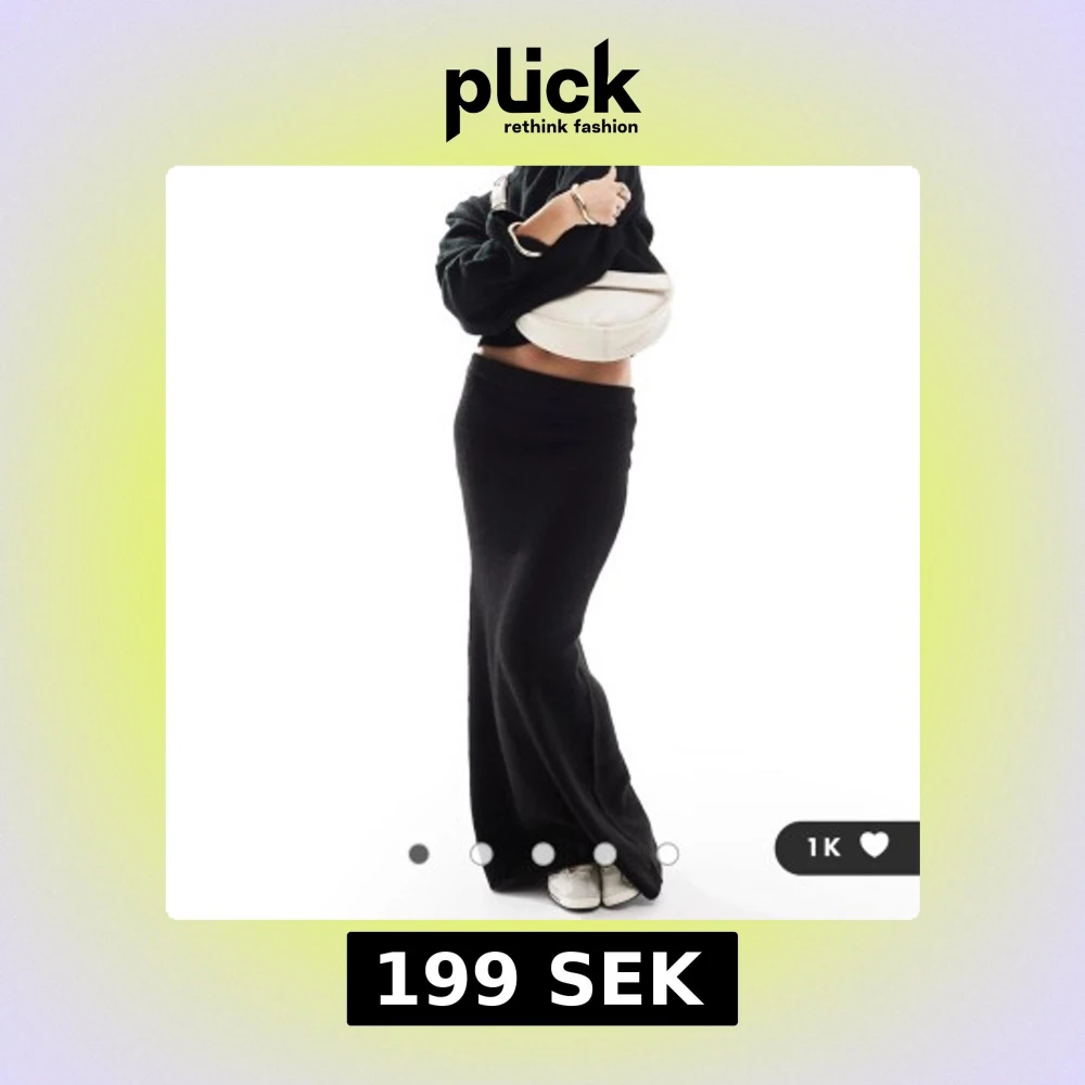 Helt ny och oanvänd svart långkjol i stickat material med enkel och clean design. Kjolen har en figurnära passform upptill och faller snyggt längs benen. Perfekt för dig som gillar en stilren och chill vibe. Midjan är elastisk för extra komfort.