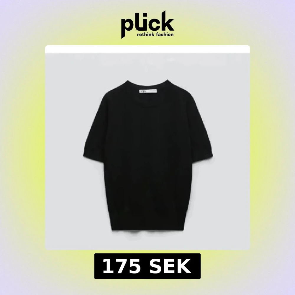 En svart, enkel och stilren croppad topp från Zara med korta ärmar. Knappt använd❣️ säljer även en likadan tröja i samma storlek fast i vit i min profil❣️