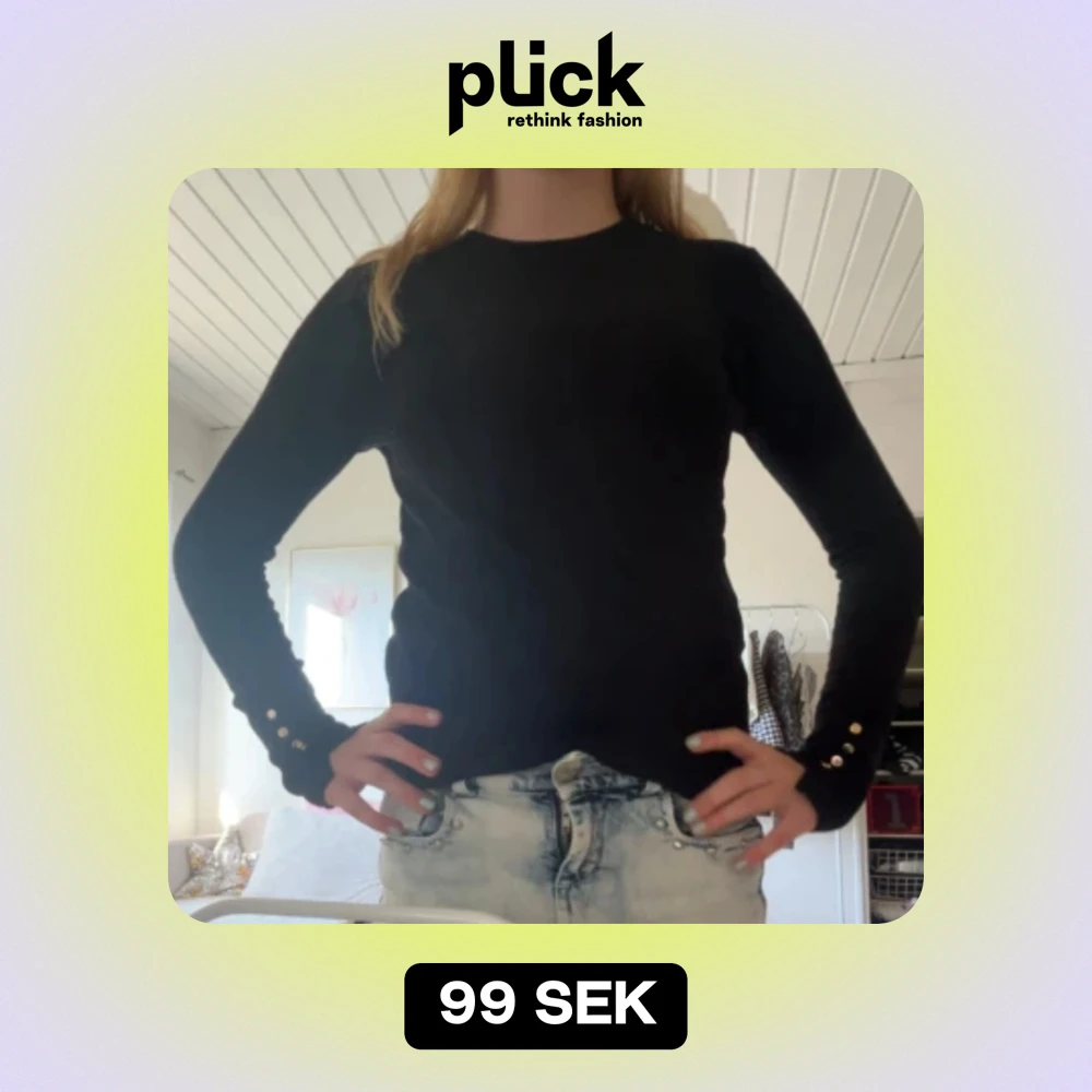 så fin svart stickad tröja som är perfekt till sommaren! den har ett litet hål som jag kan skicka bild på om ni frågar och så har sömnen spruckit lite på ena ärmen men inget som syns!, skriv prisförslag