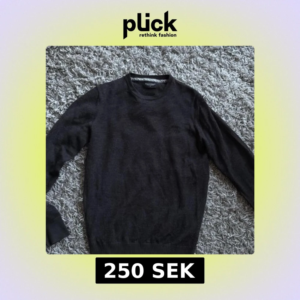 En stilren svart stickad tröja från Bruun & Stengade i storlek S. Tröjan har rund halsringning, ribbade muddar och är långärmad. Perfekt för lager-på-lager och funkar till många olika outfits.