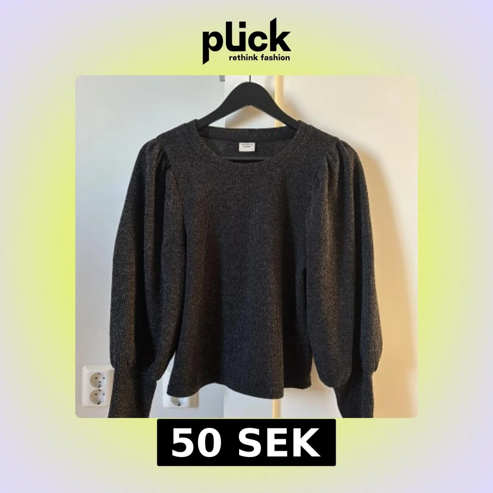 Säljer en snygg svart stickad tröja från Jacqueline de Yong. Tröjan har långa ärmar med puffiga detaljer och en rund halsringning. Perfekt för kyligare dagar och ger en stilren look.🤍