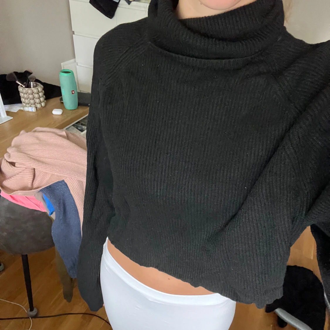Svart stickad tröja med krage från BikBok i storlek S. Bra skick på tröjan!