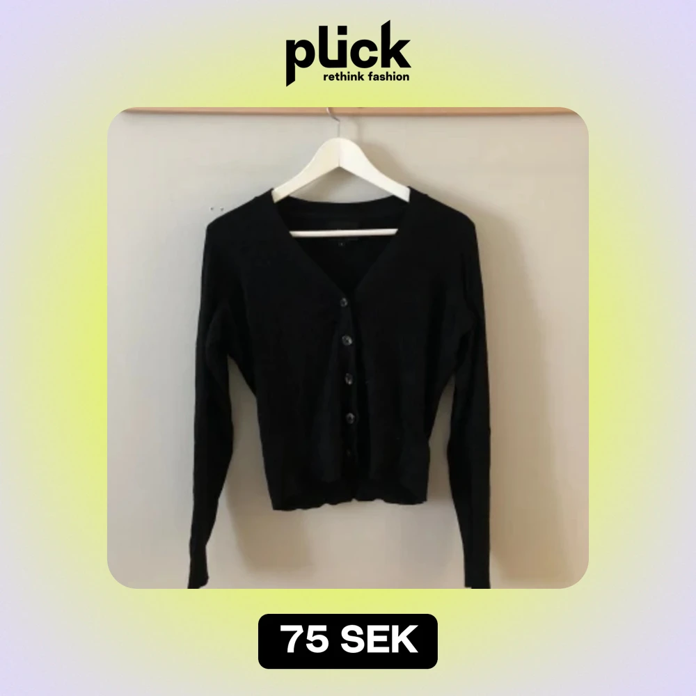Svart tröja i stickat mjukt material som knäppa framtill med knappar! Använt skick