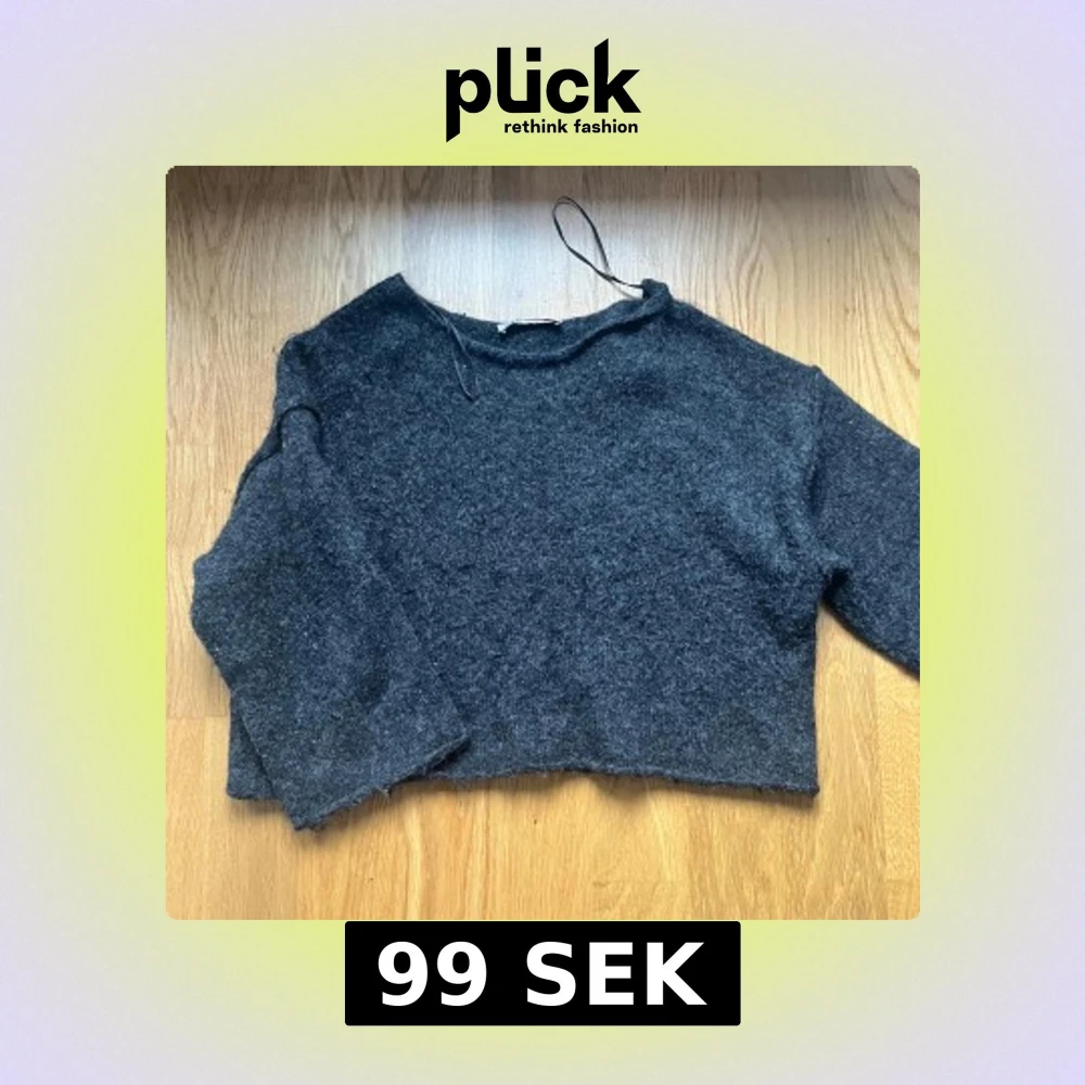 Säljer den här stickade grå svarta tröjan med lite kortare ärmar och kortare under till.