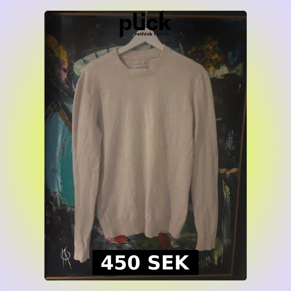 En stilren beige stickad tröja från These Glory Days i storlek small. Tröjan har rund hals, ribbade muddar och långärmad passform. Perfekt för dig som gillar enkel och clean look med mjukt material.