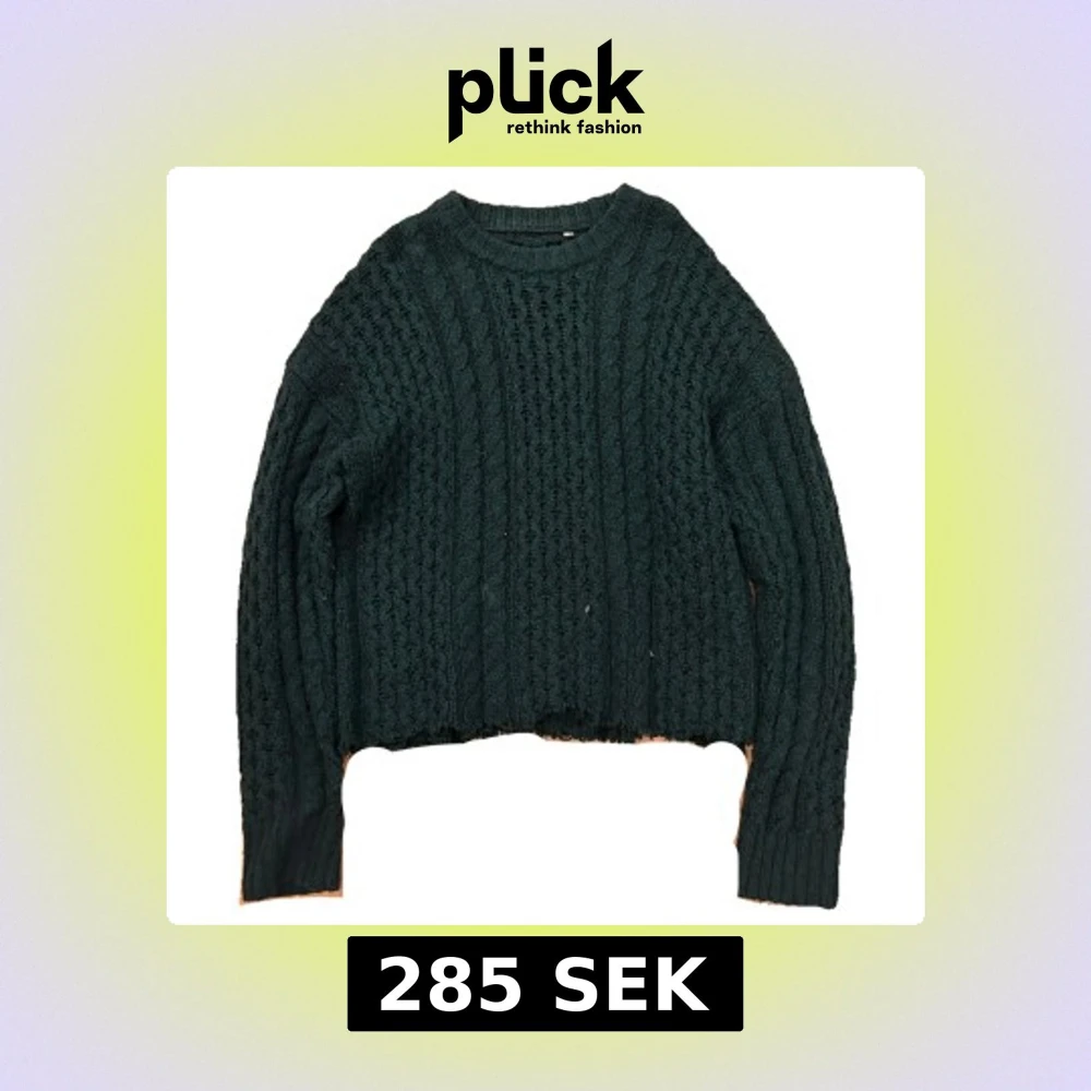 En avklippt mörkgrön grovstickad sweatshirt köpt från Eken Marknad. Storlek M men ganska oversized. Medelbra skick. Hör av dig för mer information eller frågor💥