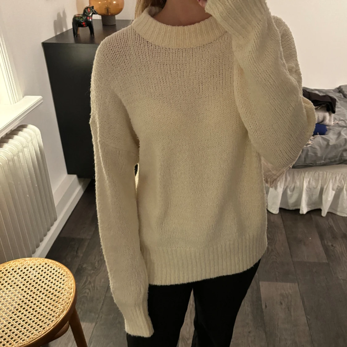 Vit stickad tröja som jag har köpt på plick, skönt material och sticks inte!!