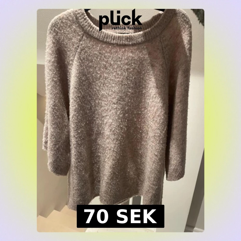 Beige stickad tröja med trekvartsärm! På bilden ser det ut som att den är nopprig, men det är bara luddet på den ☺️ super skön och varm, helt perfekt inför vintern!