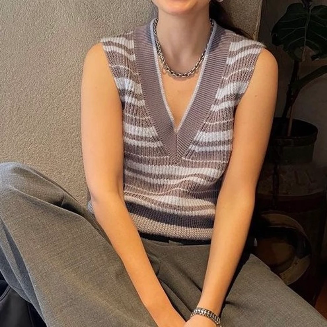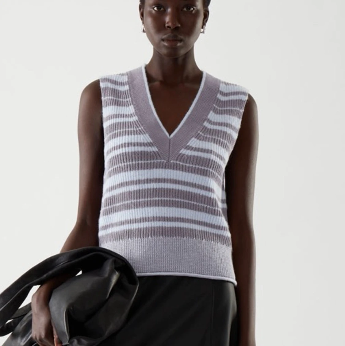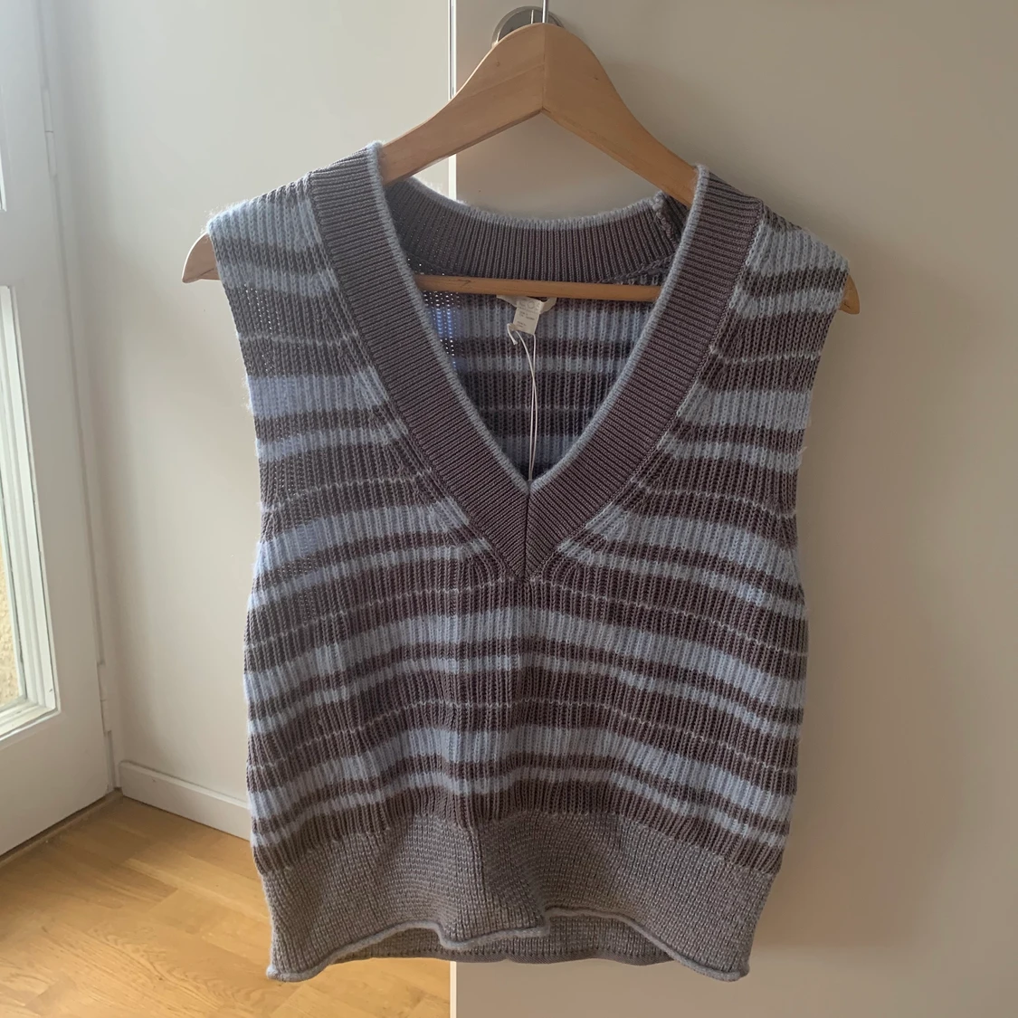 Blå randig stickad väst från COS. Aldrig använd! Prislapp kvar. Nypris 690kr. Storlek S men passar mellan XS-M