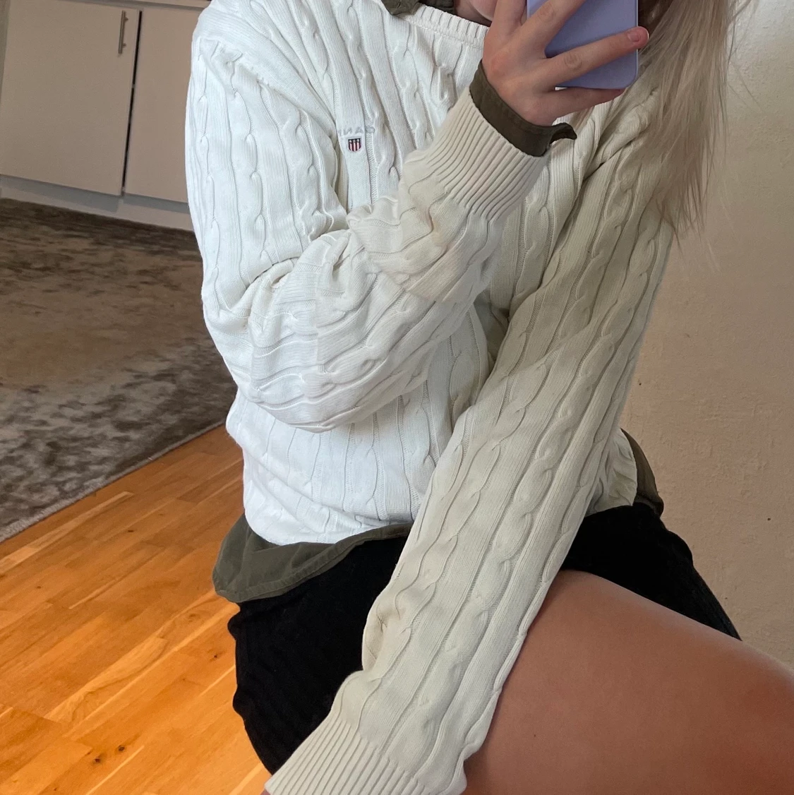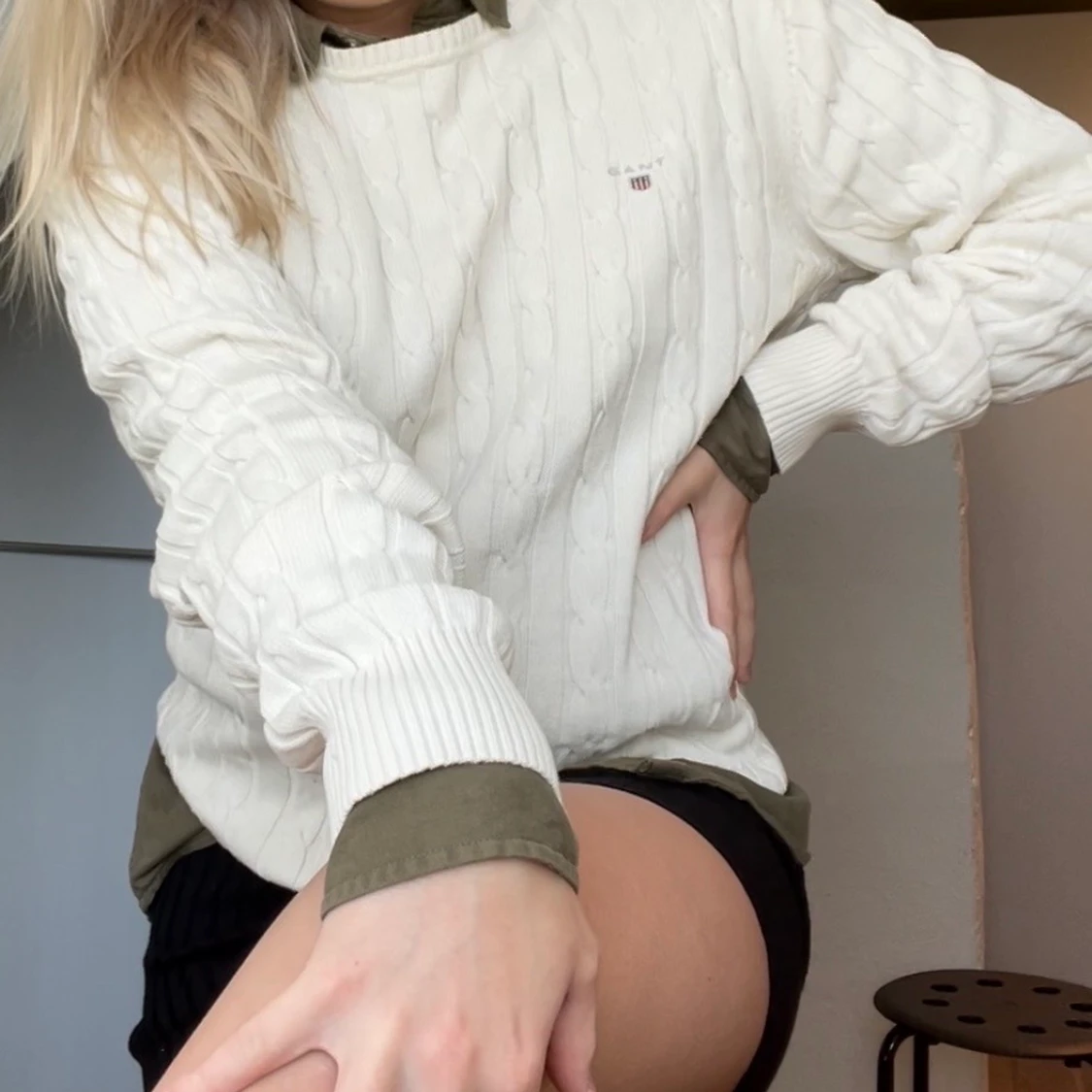 Krämvit ribbstickad ganttröja! Den är ju riktig najs nu till hösten, stor och mysig är den också så passar egentligen alla storlekar. Fits nice oversized ✌️ Den är i väldigt fint och välbevarat skick säljer för 450 + frakt 🥂